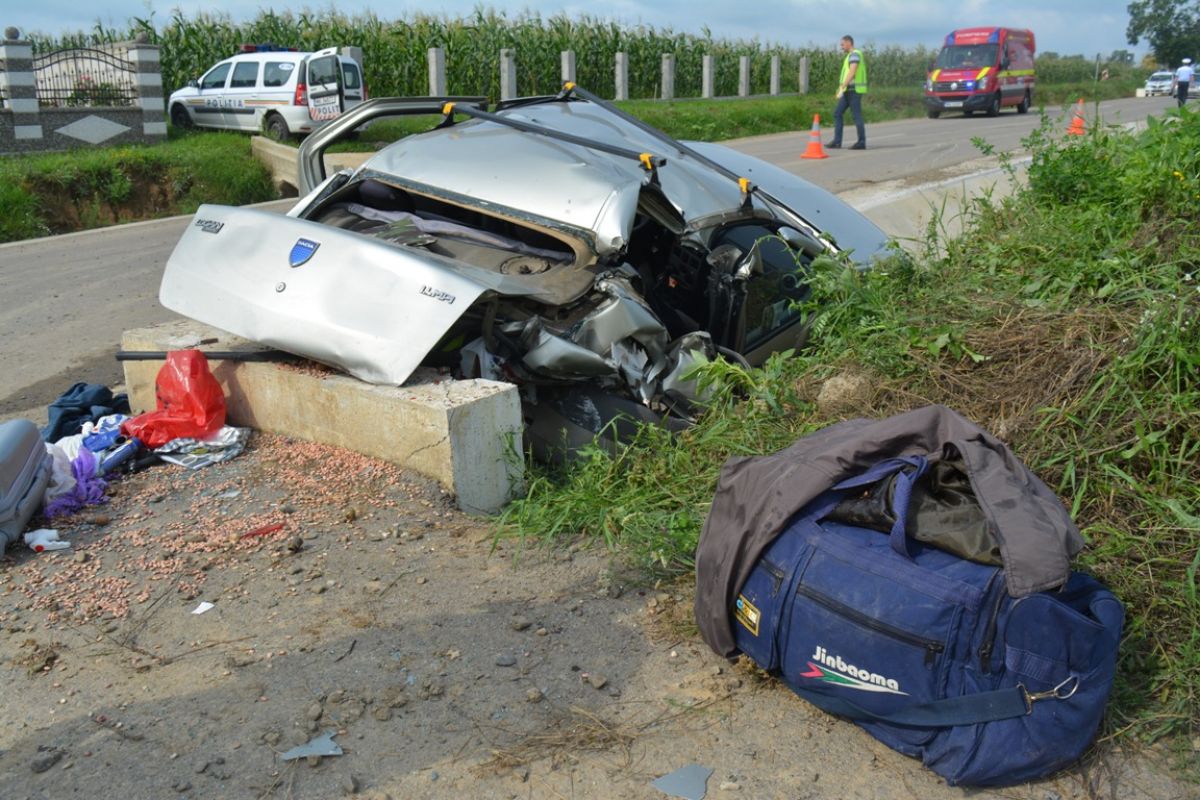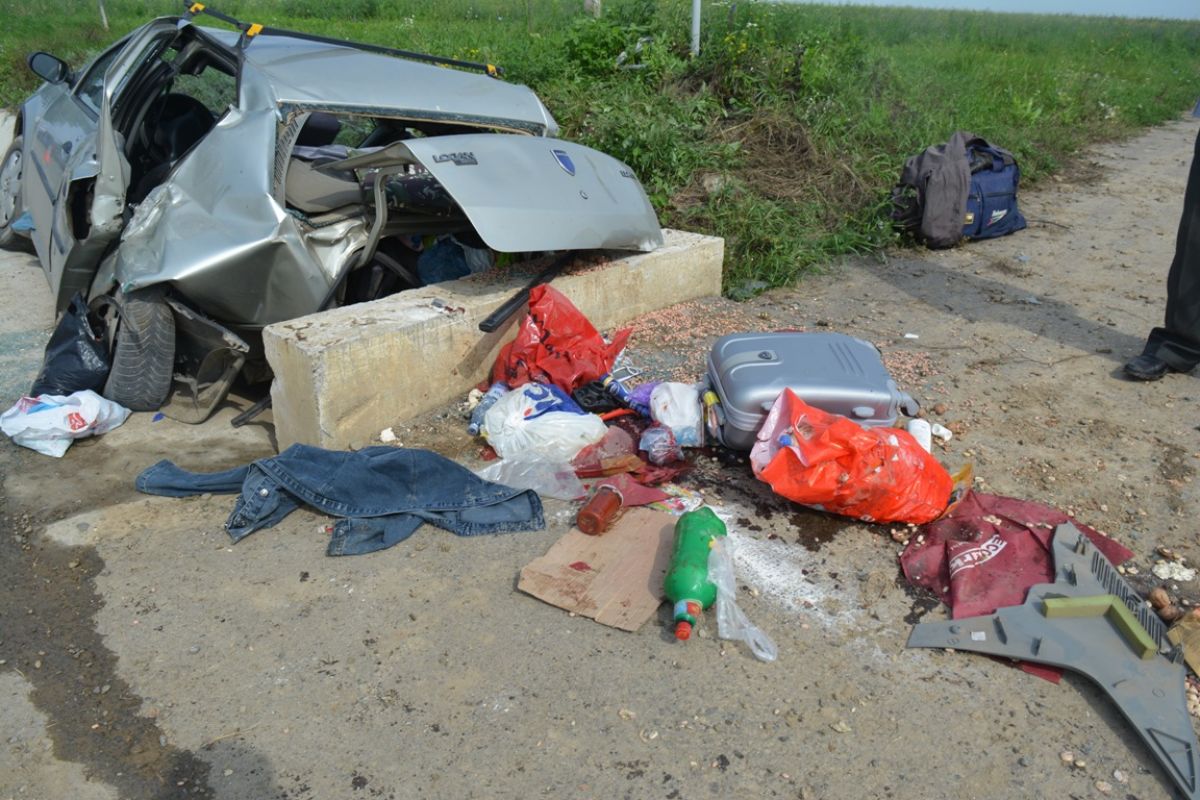 Pe lângă faptul că Dacia Logan era distrusă în totalitate, tot felul de elemente din caroserie și obiecte din mașină se găseau pe lângă aceasta, dar și la câțiva metri buni distanță.