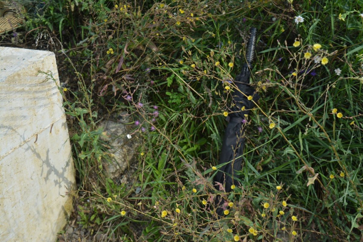 Un scaun se află în șanț, iar în apropierea acestuia o tetieră.