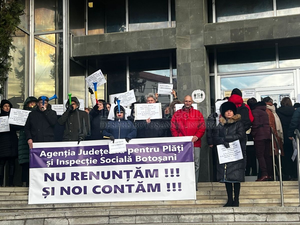 Angajații Agenției Județeane pentru Plăți și Inspecție Socială (AJPIS) au ieșit și astăzi în fața instituției.