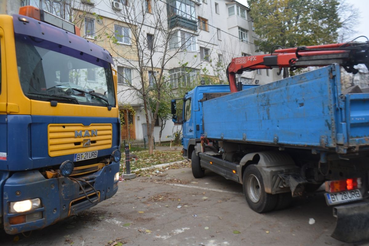 Deşeurile s-au strâns între două blocuri, în apropierea unei rampe, iar utilajele societăţii de salubrizare nu puteau ajunge acolo după ce Primăria Botoşani a concesionat locuri de parcare până în vecinătatea respectivului punct de colectare.