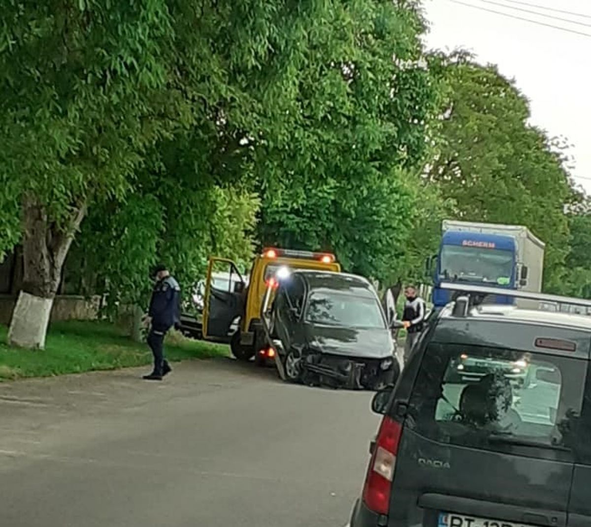 La fața locului s-a deplasat un echipaj de Poliție. Circulația în zonă a fost afectată.