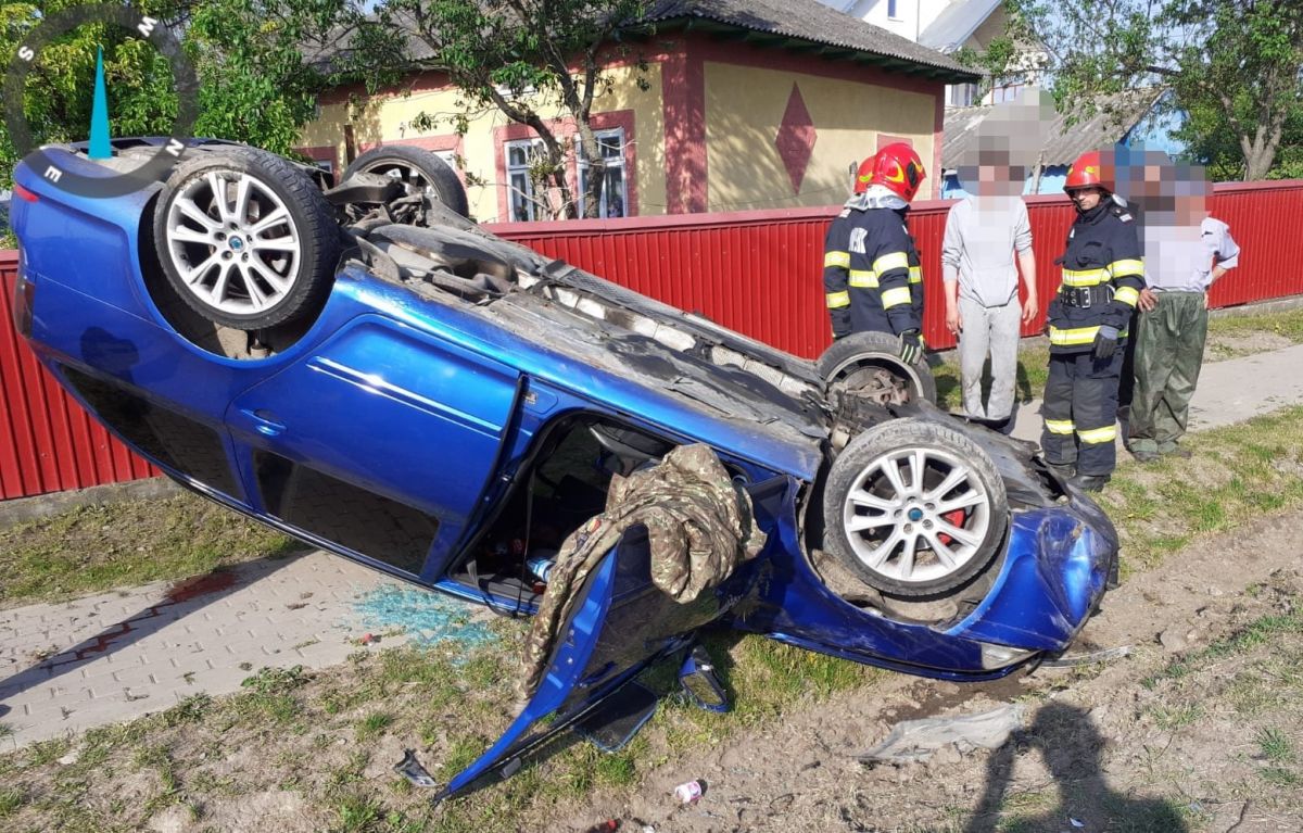 În eveniment au fost implicate două mașini. În urma impactului una dintre ele, în care se aflau trei tineri de 22, 23 și 24 de ani, s-a răsturnat pe cupolă.
