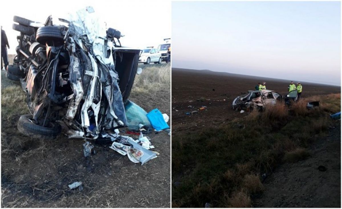 "La data de 6 noiembrie 2017, polițiștii constanteni au fost sesizati cu privire la producerea unui accident rutier, care a avut loc pe DN22, unde un conducător auto, care se deplasa dinspre Constanța catre Tulcea, din cauza neatenției și a neadaptarii vitezei la condițiile de drum, a pătruns pe sensul opus, intrând in coliziune cu un microbuz-transport persoane. In urma accidentului rutier a rezultat decesul pasagerul (dreapt,spate) din auto si vătămarea corporală ușoară a altor 7 persoane. S a întocmit dosar de cercetare penală", anunţă poliţiştii constănţeni. (Sursa: Observator)