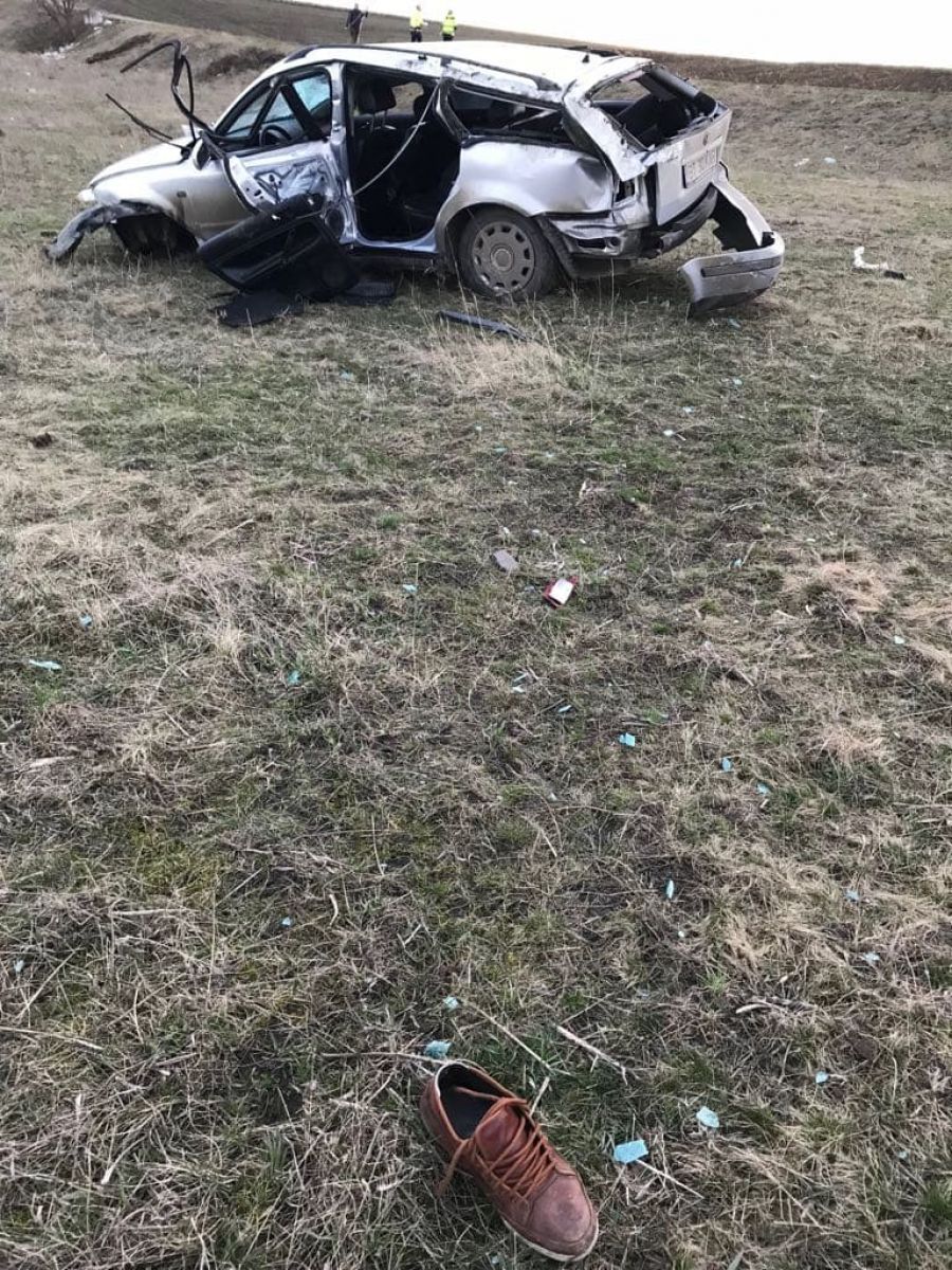 S-a izbit în primă fază de un stâlp de lemn pe care l-a făcut bucăți apoi mașina s-a rostogolit practic într-o vale. A fost distrusă aproape în totalitate, bucăți din caroserie, inclusiv o roată, fiind împrăștiate pe câmp.