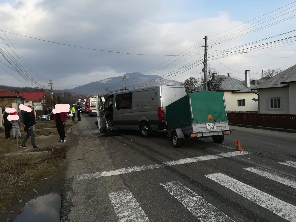 În urmă impactului, autoturismul bărbatului de 47 de ani a fost aruncat în șanț, iar remorcă autoutilitarei a lovit una dintre mașinile oprite la trecerea de pietoni.