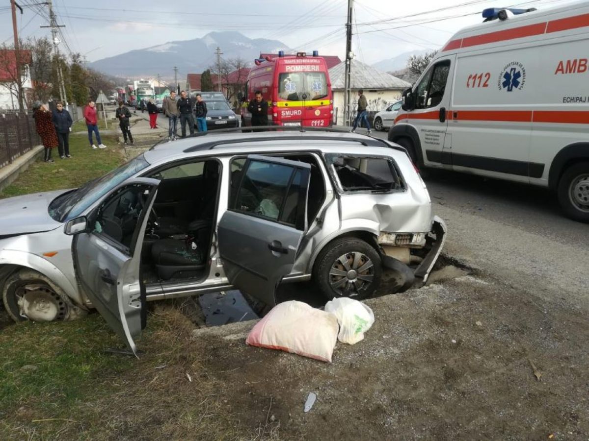 Prima maşină a fost aruncată într-un şanţ şi toate cele 4 persoane aflate la bord au ajuns la spital.