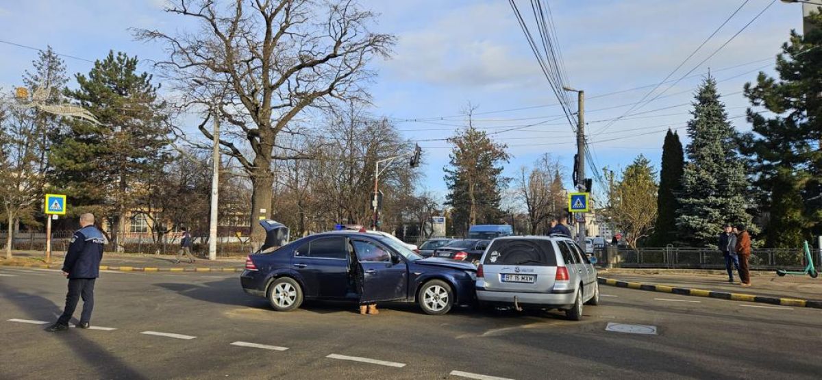 Fordul circula dinspre Casa Tineretului, iar cealaltă mașină de pe strada Nicolae Iorga. S-au ciocnit în mijlocul intersecției.