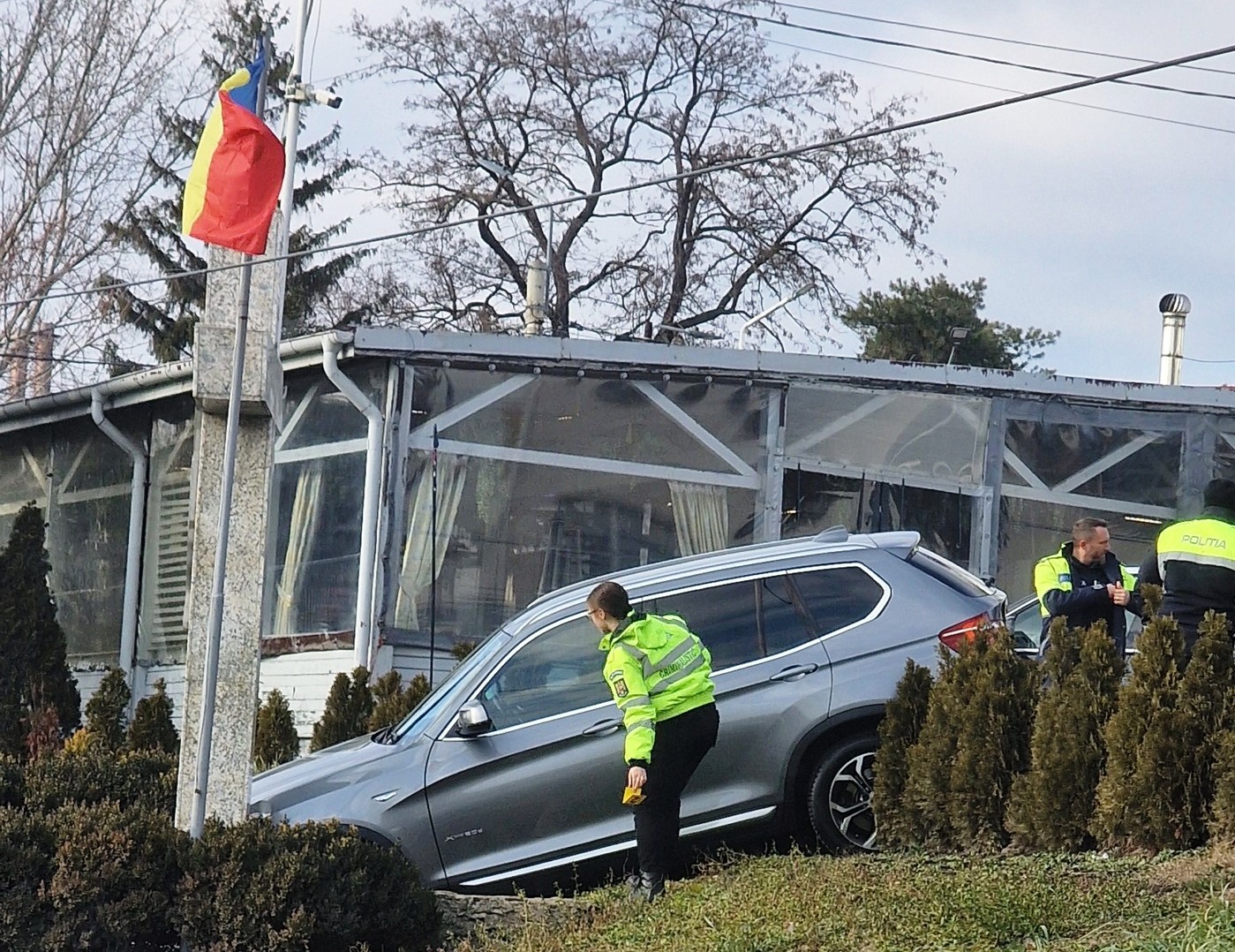 Un accident mai rar întâlnit a avut loc astăzi la amiază în parcarea Hotelului Premier, acolo unde o mașină a pornit singură spre șosea. Însă nu pe carosabil, ci prin spațiul verde.