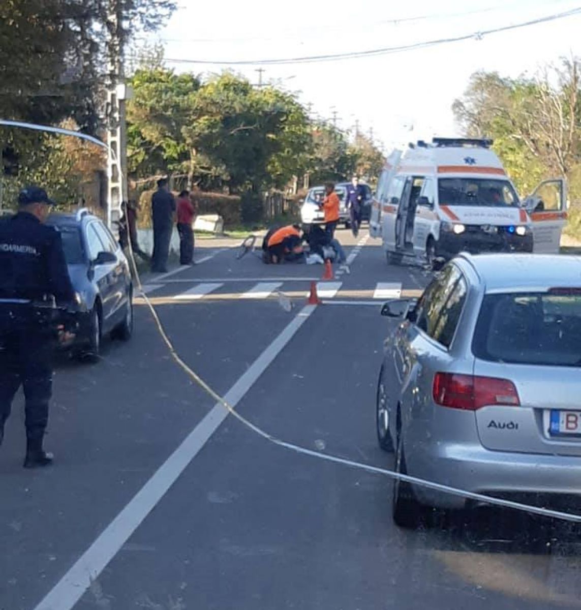 Biciclistul a căzut cu capul pe asfalt, având probleme grave la coloana cervicală.