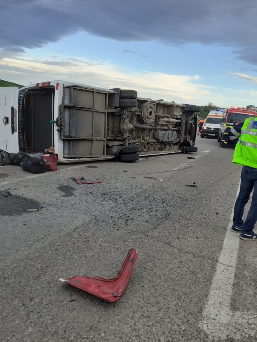 Călătorii, mulţi dintre ei tineri din Republica Moldova, au ieşit din microbuz prin trapa din plafonul maşinii. De altfel, microbuzul este plin de sânge la interior.
