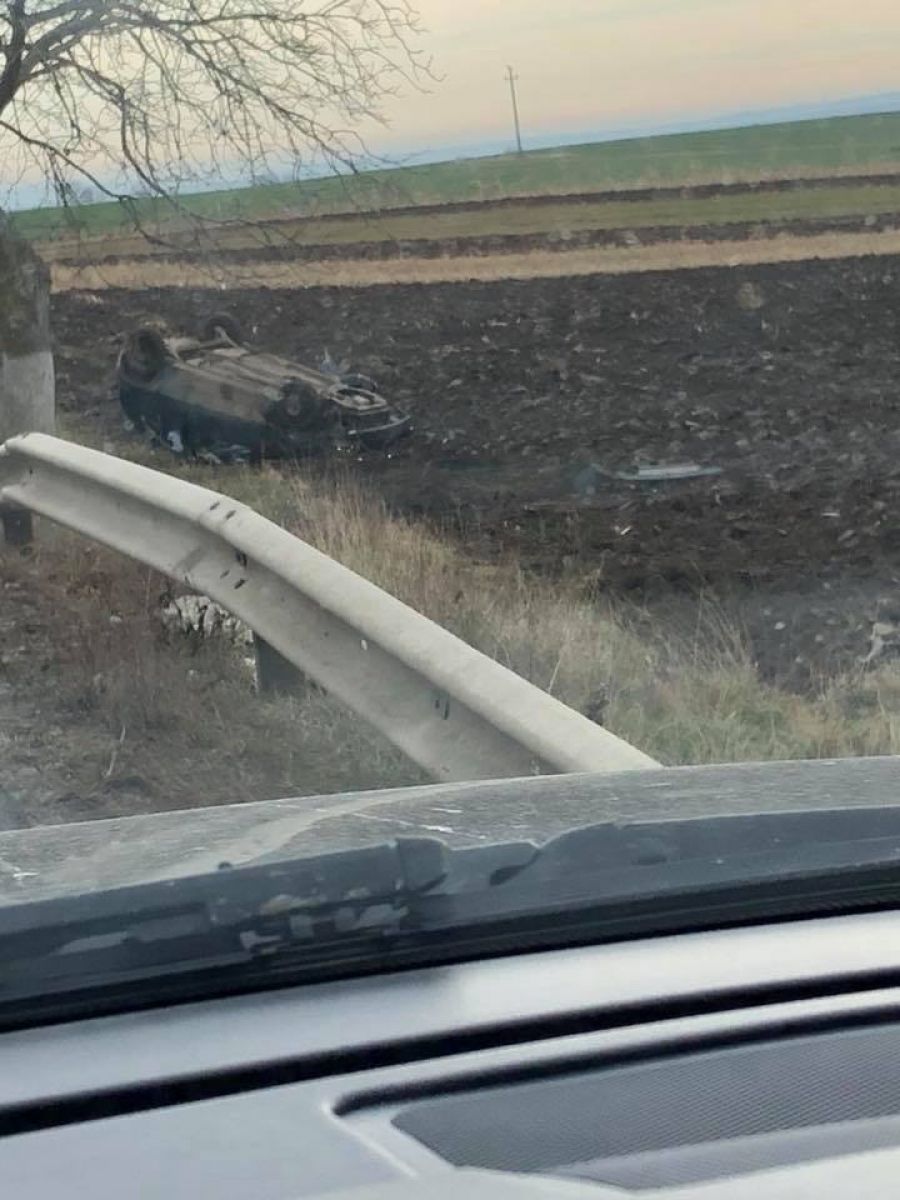 În urma impactului şoferul Opelului a pierdut controlul volanului, a ieşit de pe carosabil şi s-a dat de mai multe ori peste cap.