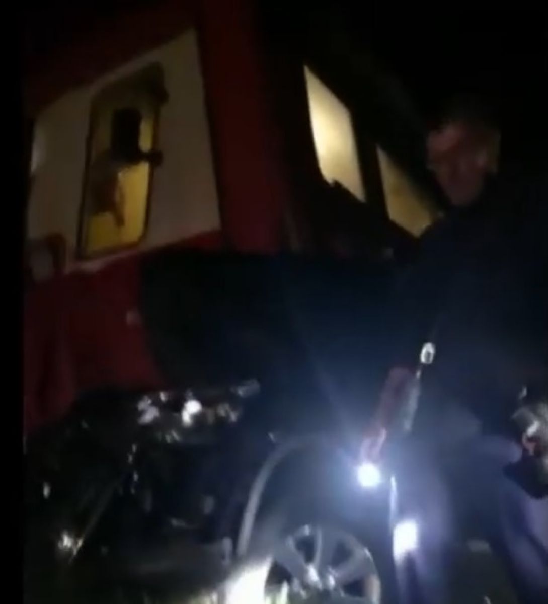 Trenul care circulă pe ruta Dorohoi - Iași a lovit o mașină și a târât-o peste 200 de metri.