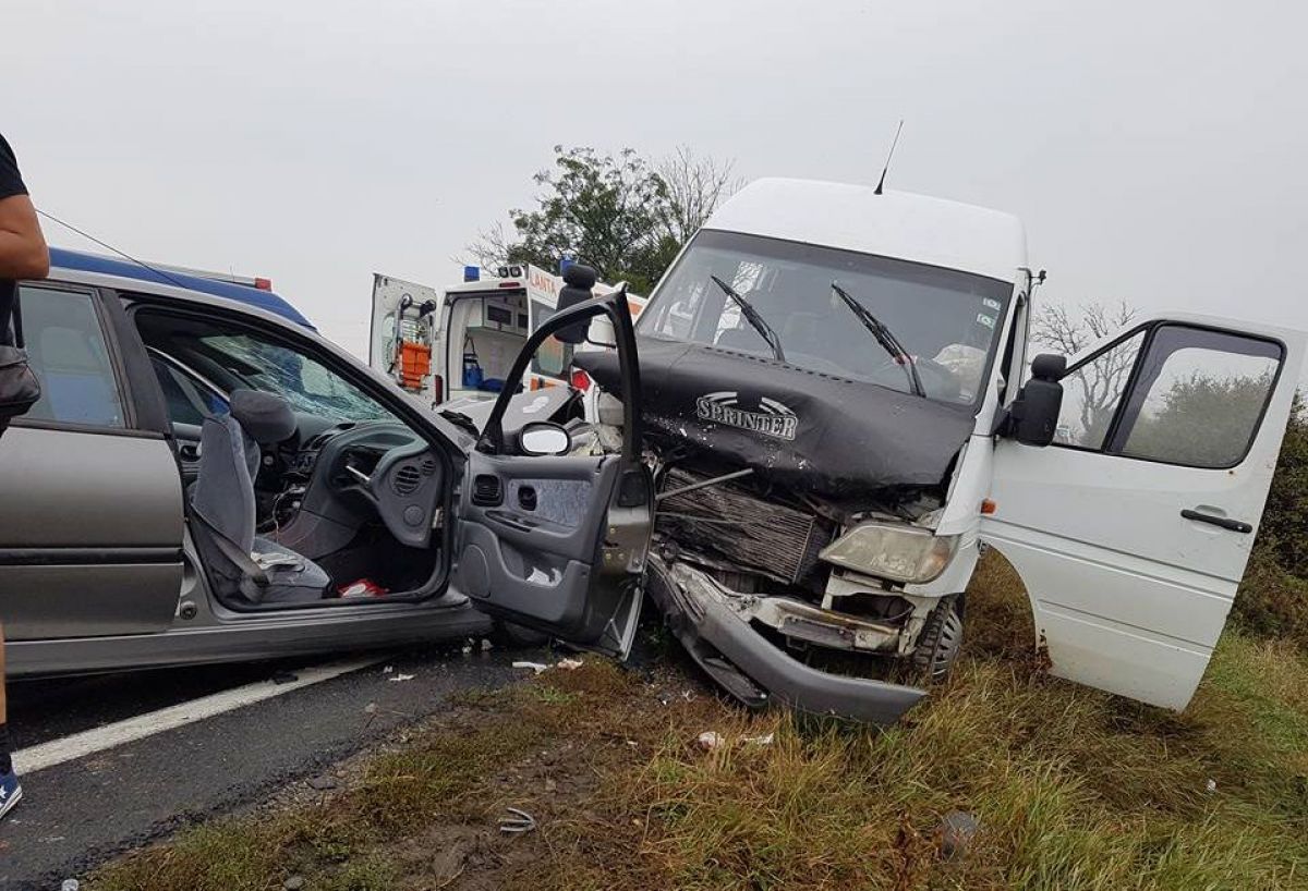 Accidentul s-a produs astăzi, pe DN1 între Miercurea Sibiului şi Sebeş (judeţul Alba), pe sensul de mers către Sebeş, după ce un microbuz de pasageri a intrat în coliziune cu un autoturism în care se aflau trei persoane.