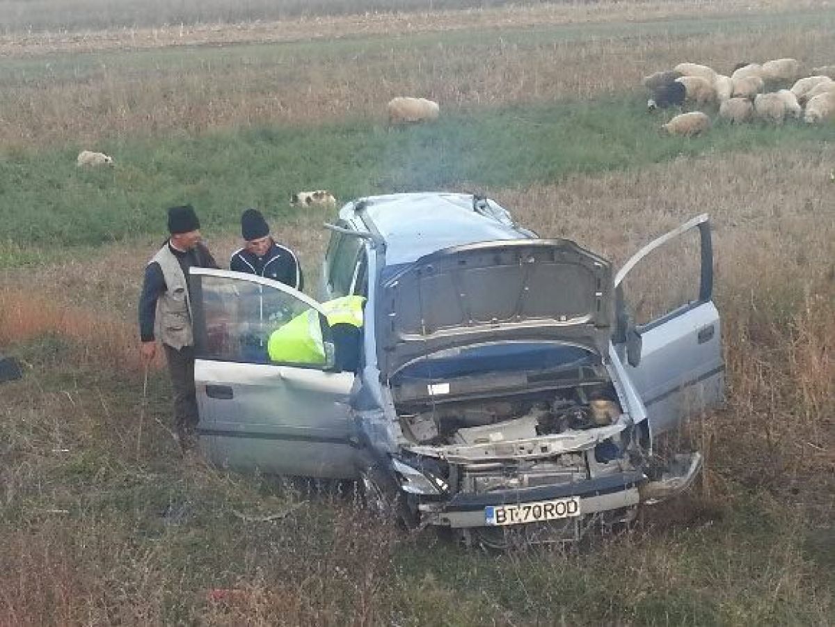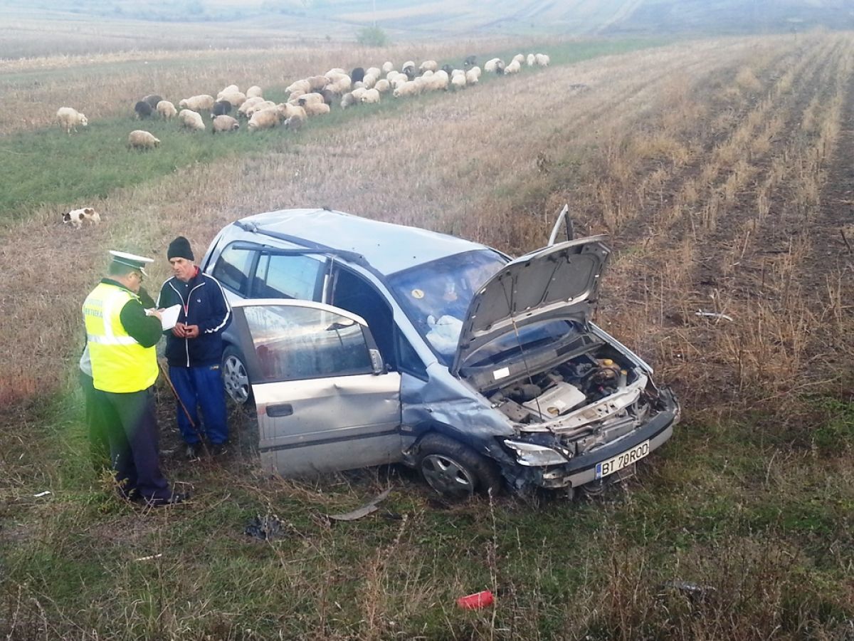 Un autoturism marca Opel Zafira s-a răsturnat pe un câmp unde pășteau niște oi. În vehicul se aflau un bărbat ce pare să fi aibă puțin peste 30 de ani și trei copii. Mergeau spre Botoșani și aveau viteză foarte mare, iar șoferul nu a mai putut stăpâni volanul. Mașina s-a răsturnat în decor iar bucăți din caroserie sau elemente din interiorul mașinii au rămas împrăștiate pe o rază de cinci metri în jurul autoturismului. Pasagerii din Opel sunt din Brehuiești. Au fost transportați la Unitatea de Primiri Urgențe a Spitalului Județean Mavromati. Se aflau în stare destul de gravă având în vedere că părți din mașină erau stropite la propriu cu sânge, atât de la copii, pe partea dreaptă cât și de la șofer.