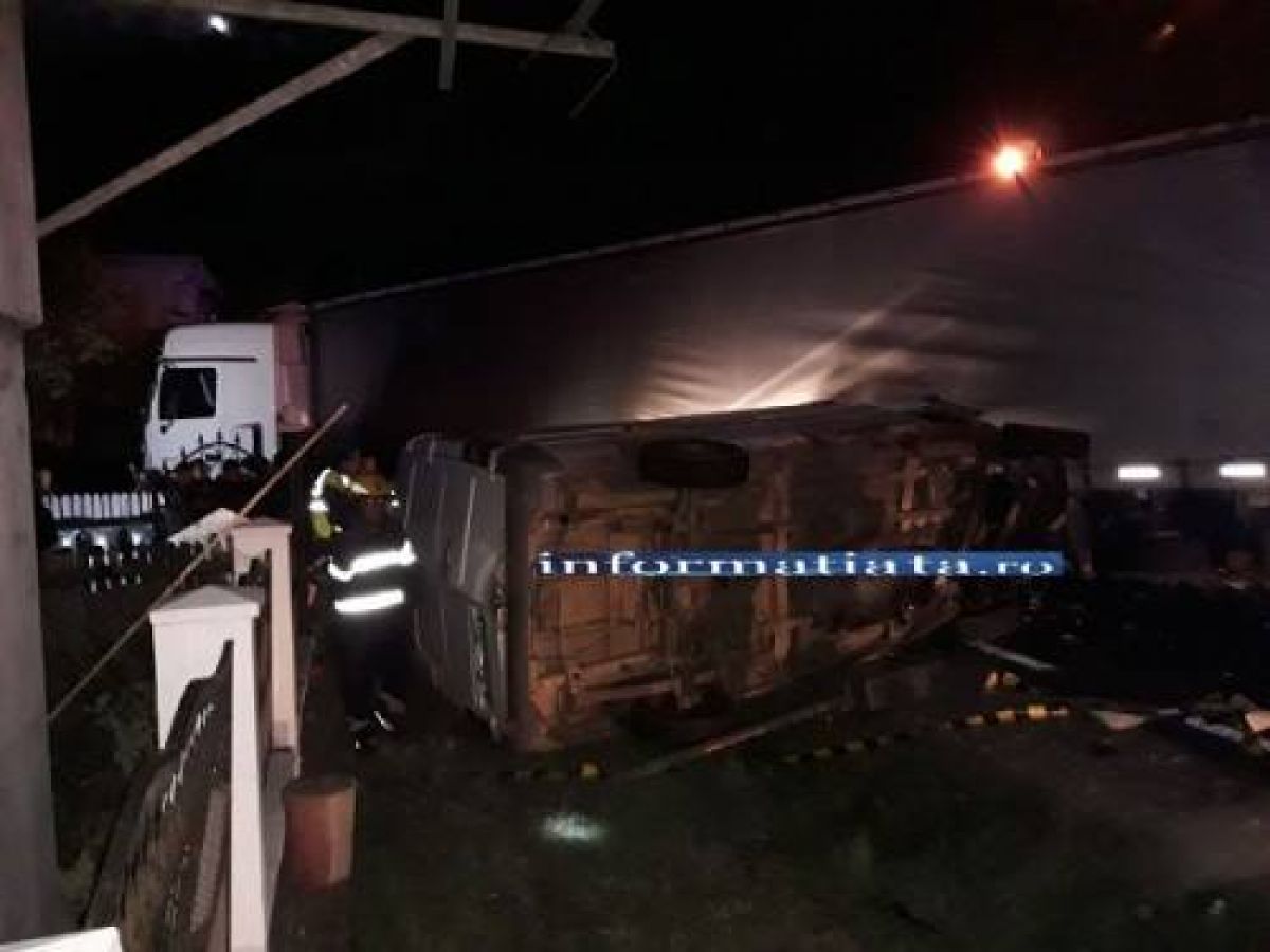 În urmă impactului, autoutilitara a fost proiectată într-o altă maşină. Apoi s-a răsturnat pe o parte.