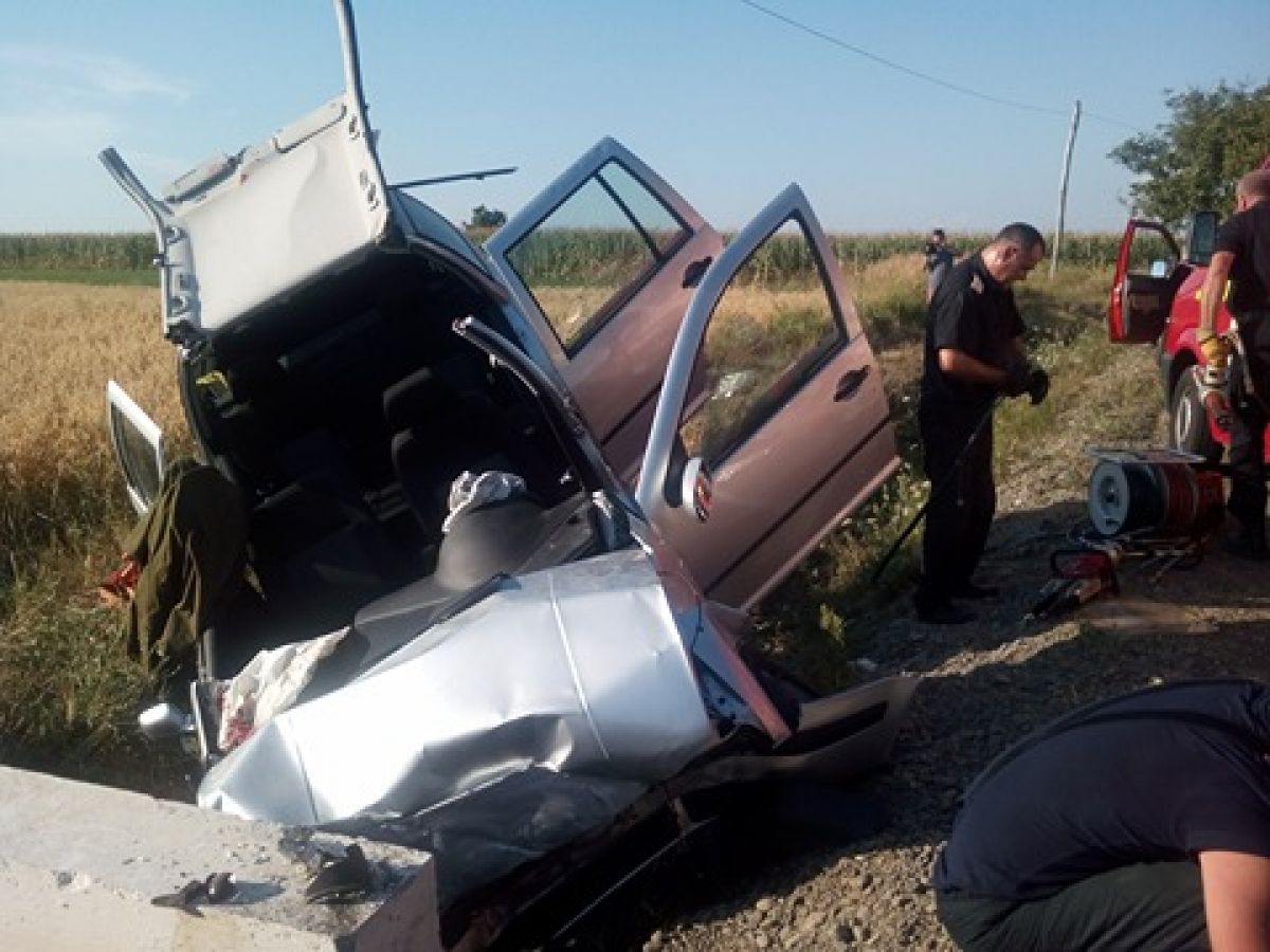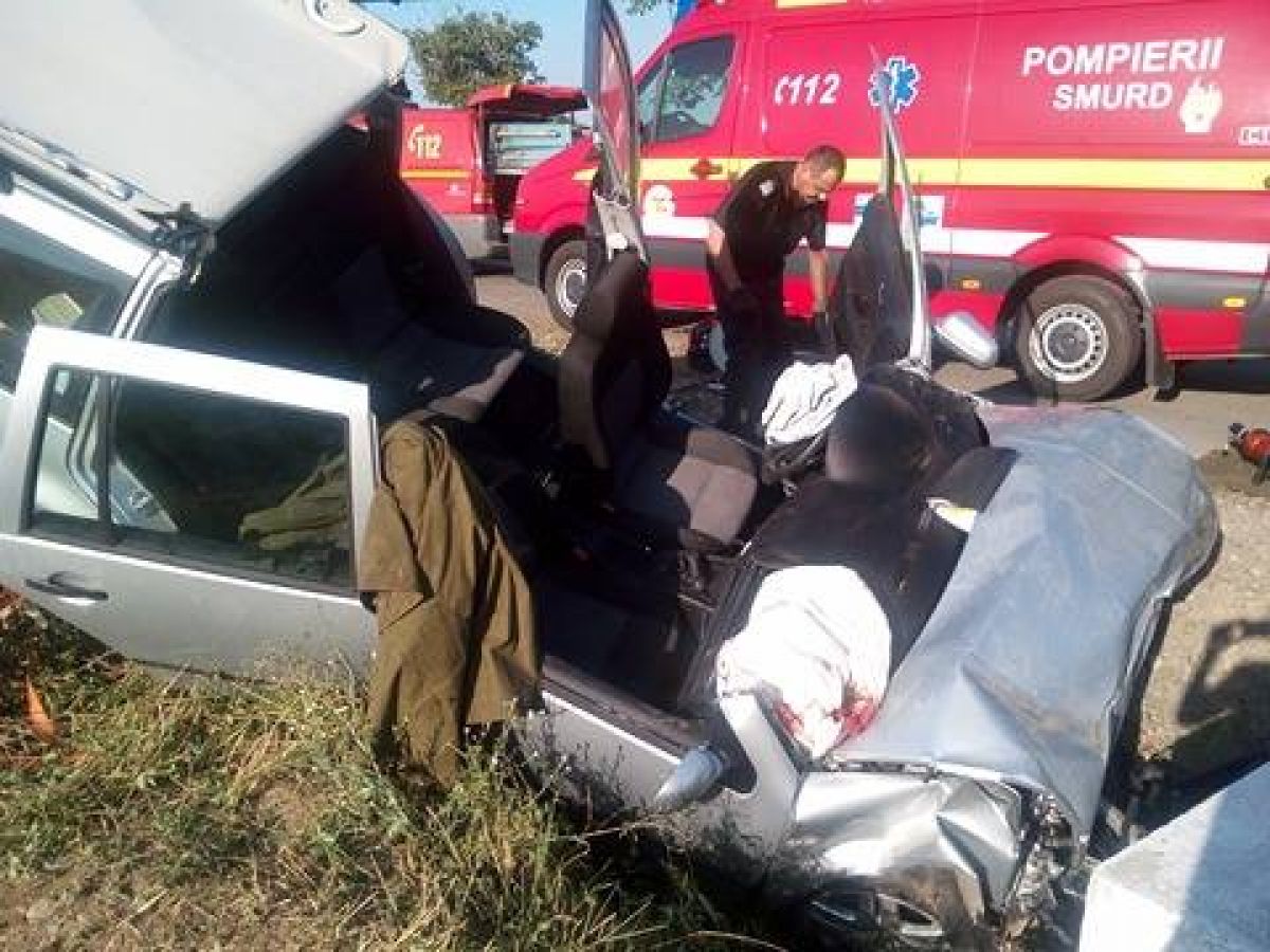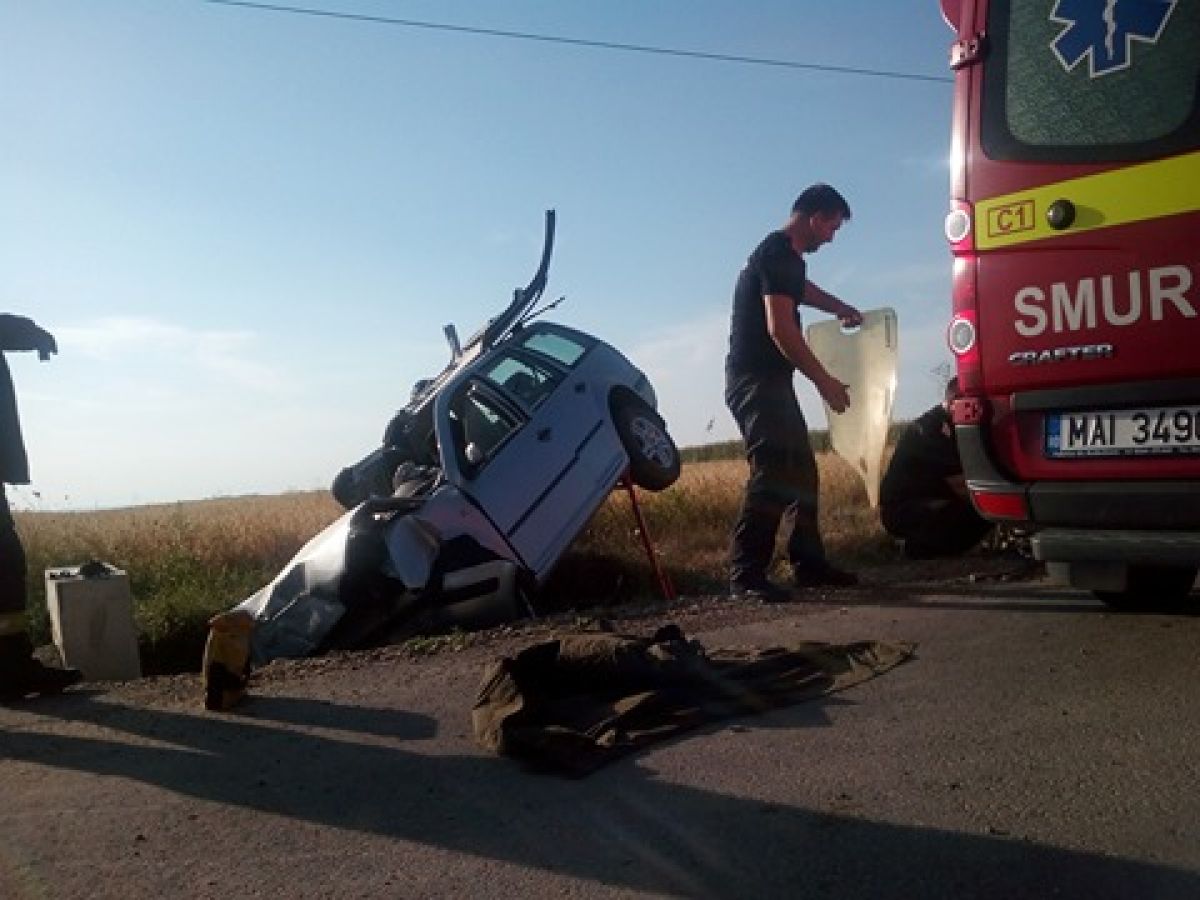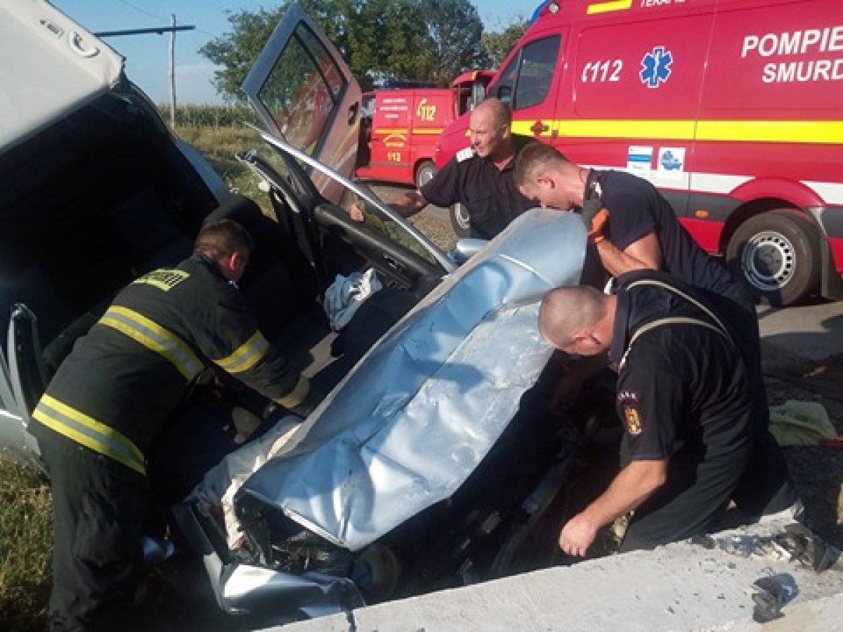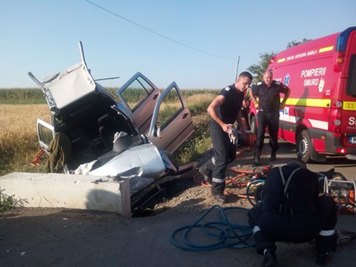 Ambii pasageri au rămas încarceraţi în autoturism, fiind nevoie de intervenţia echipajelor de Descarcerare. Pompierii au fost nevoiţi să taie cupola maşinii pentru a-i extrage pe cei doi răniţi.