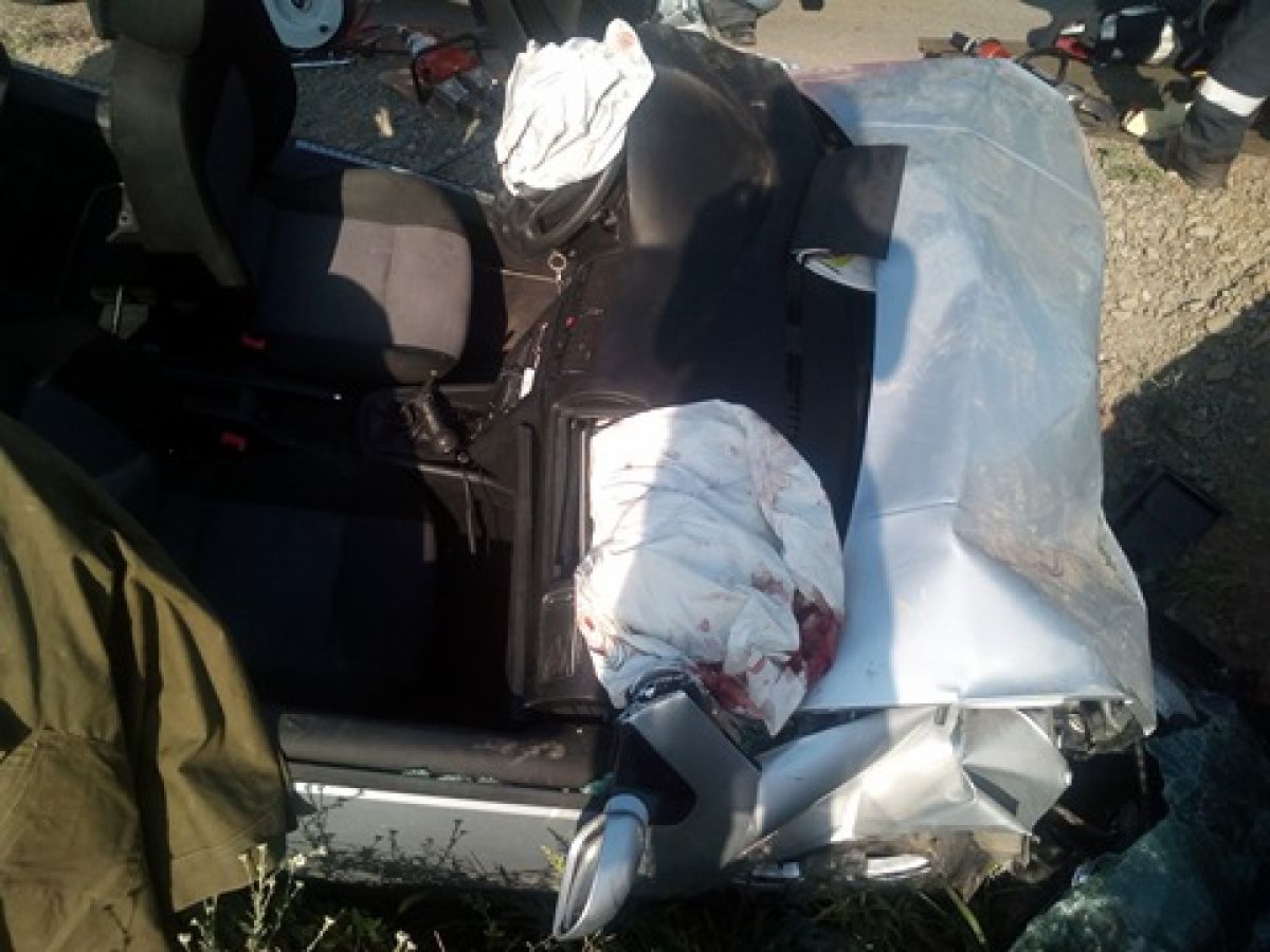 La Golf s-au declanşat ambele airbaguri care sunt pline de sânge, cum este de altfel şi cupola maşinii pe interior.