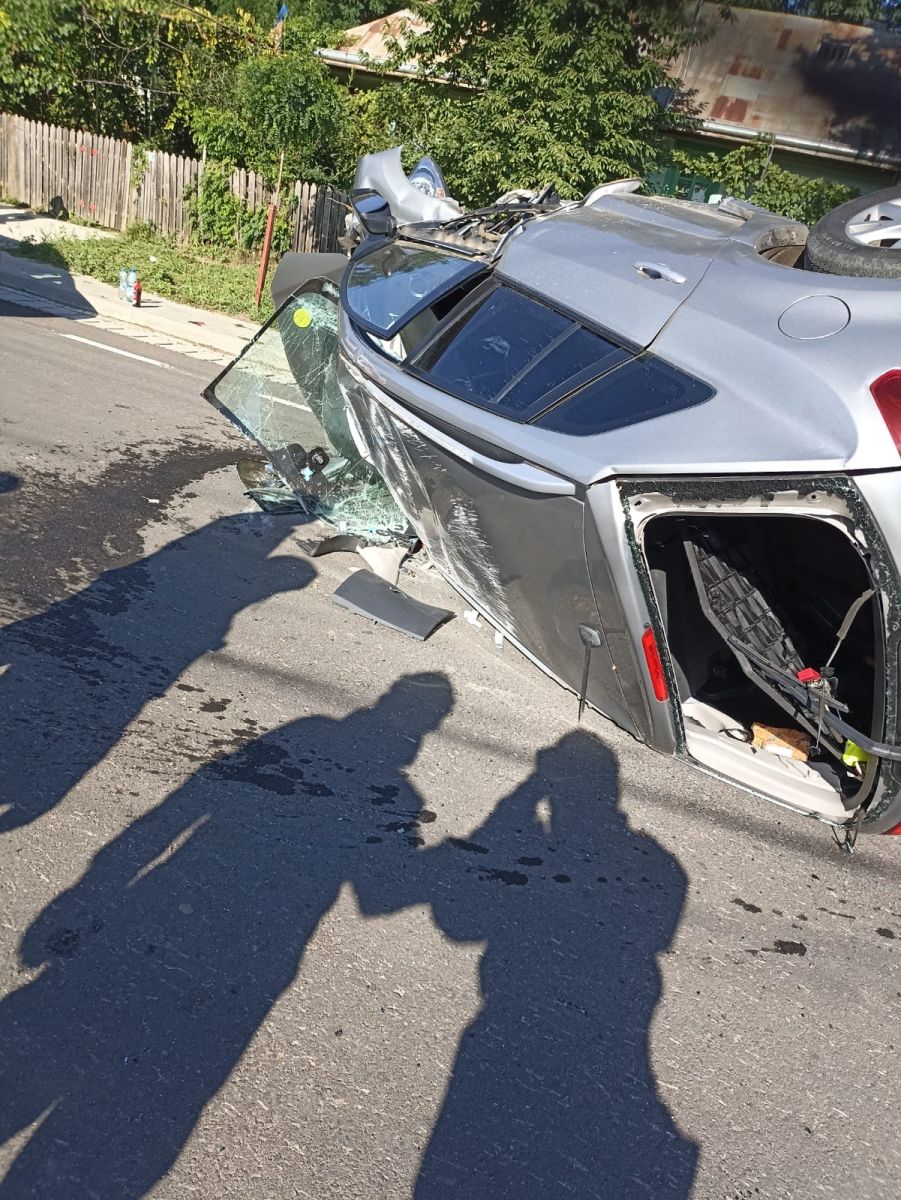 O persoană a avut nevoie de îngrijiri medicale după ce mașina în care se afla a lovit un cap de pod, după care s-a răsturnat pe partea carosabilă.