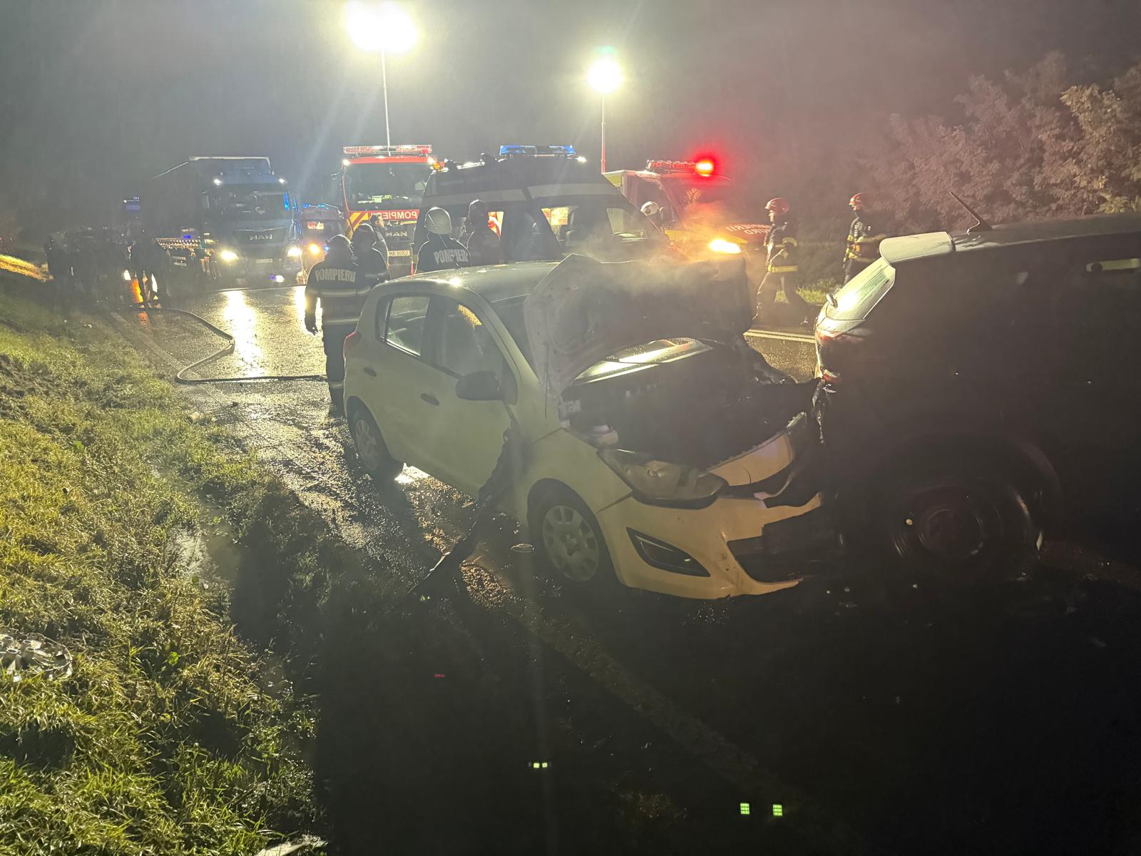 Accident grav cu patru autoturisme la Cumpărătura: Șase victime, o mașină cuprinsă de flăcări