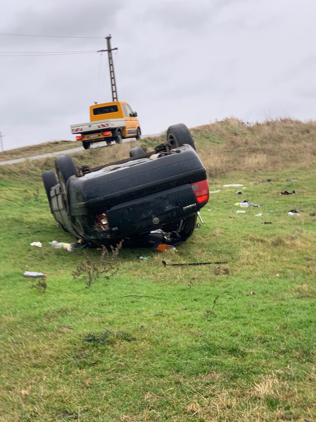 Nu se știe din ce motive, șoferul a pierdut controlul volanului și s-a răsturnat pe marginea drumului.