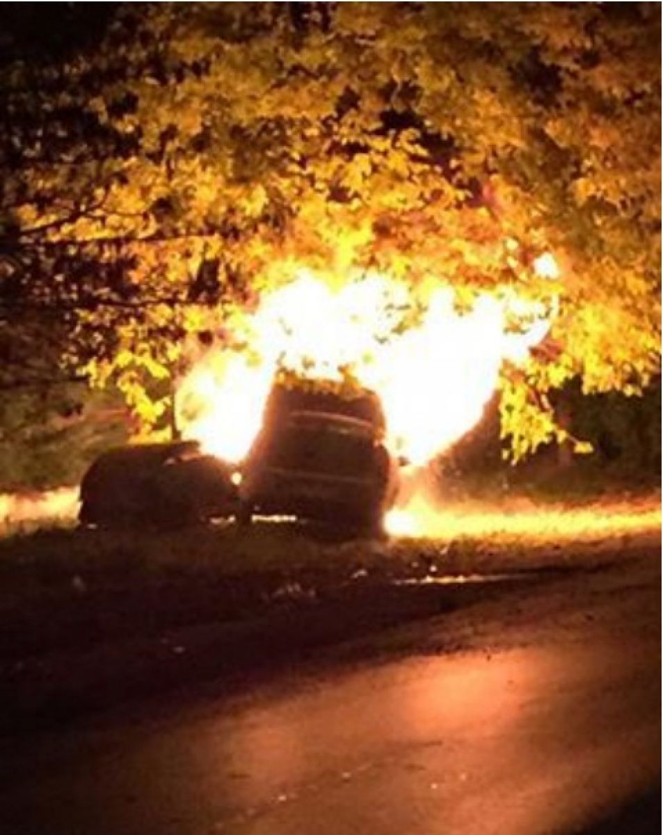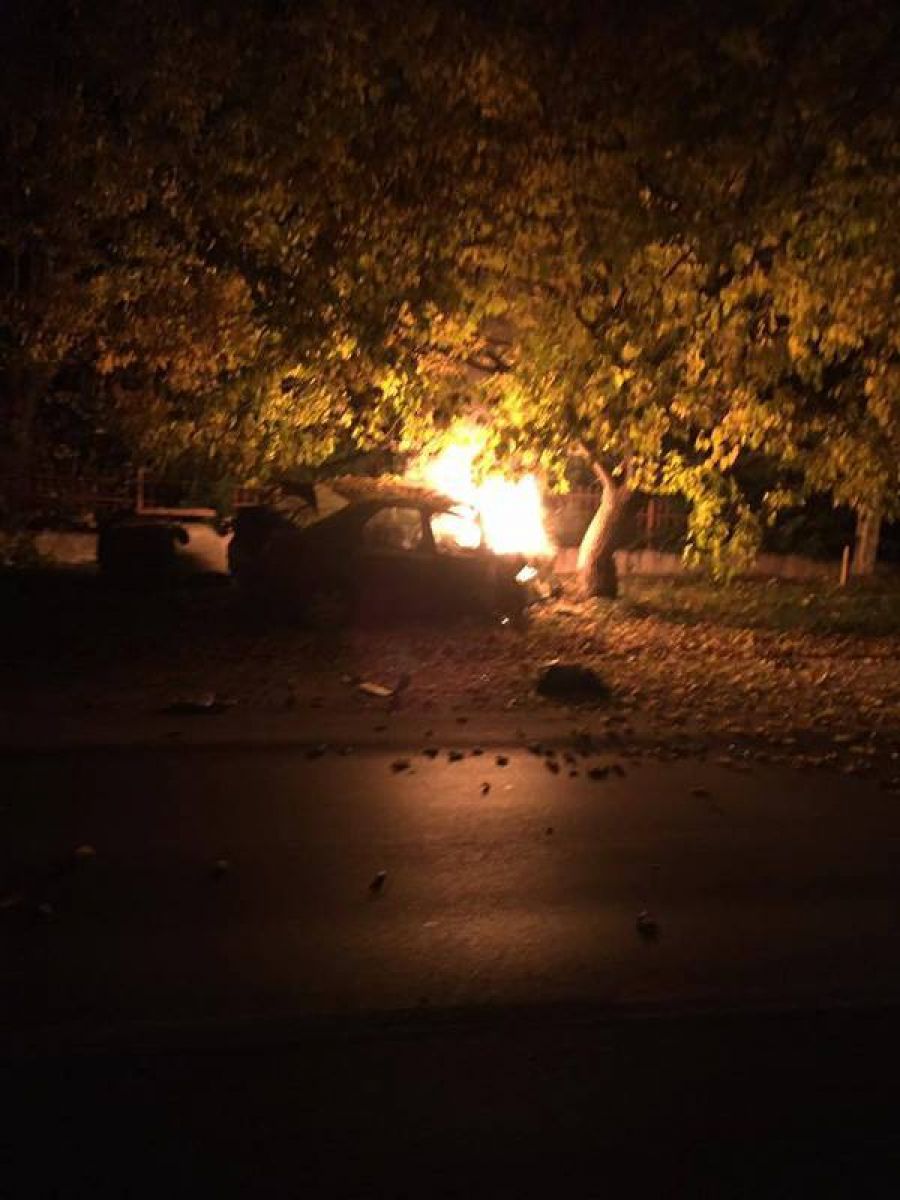 Maşina s-a izbit violent de copac de pe marginea drumului, iar la scurt timp a luat foc. Un participant la trafic l-a ajutat pe şofer să se salveze