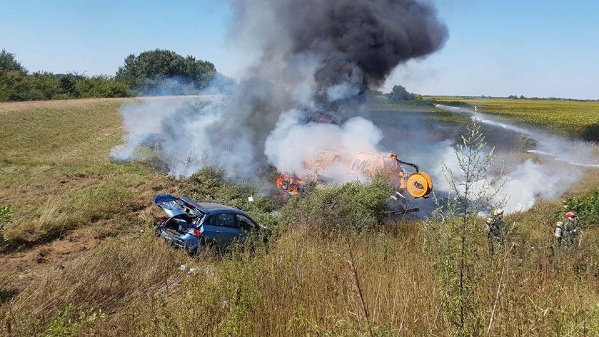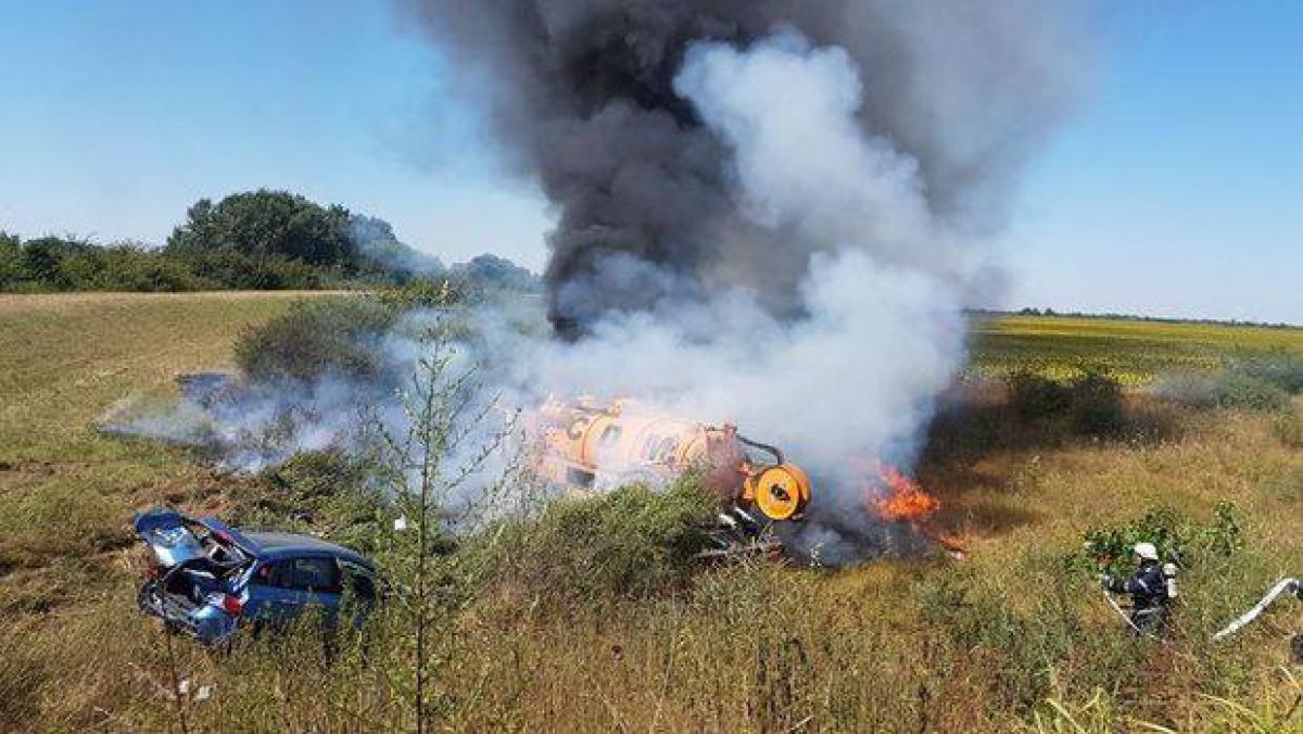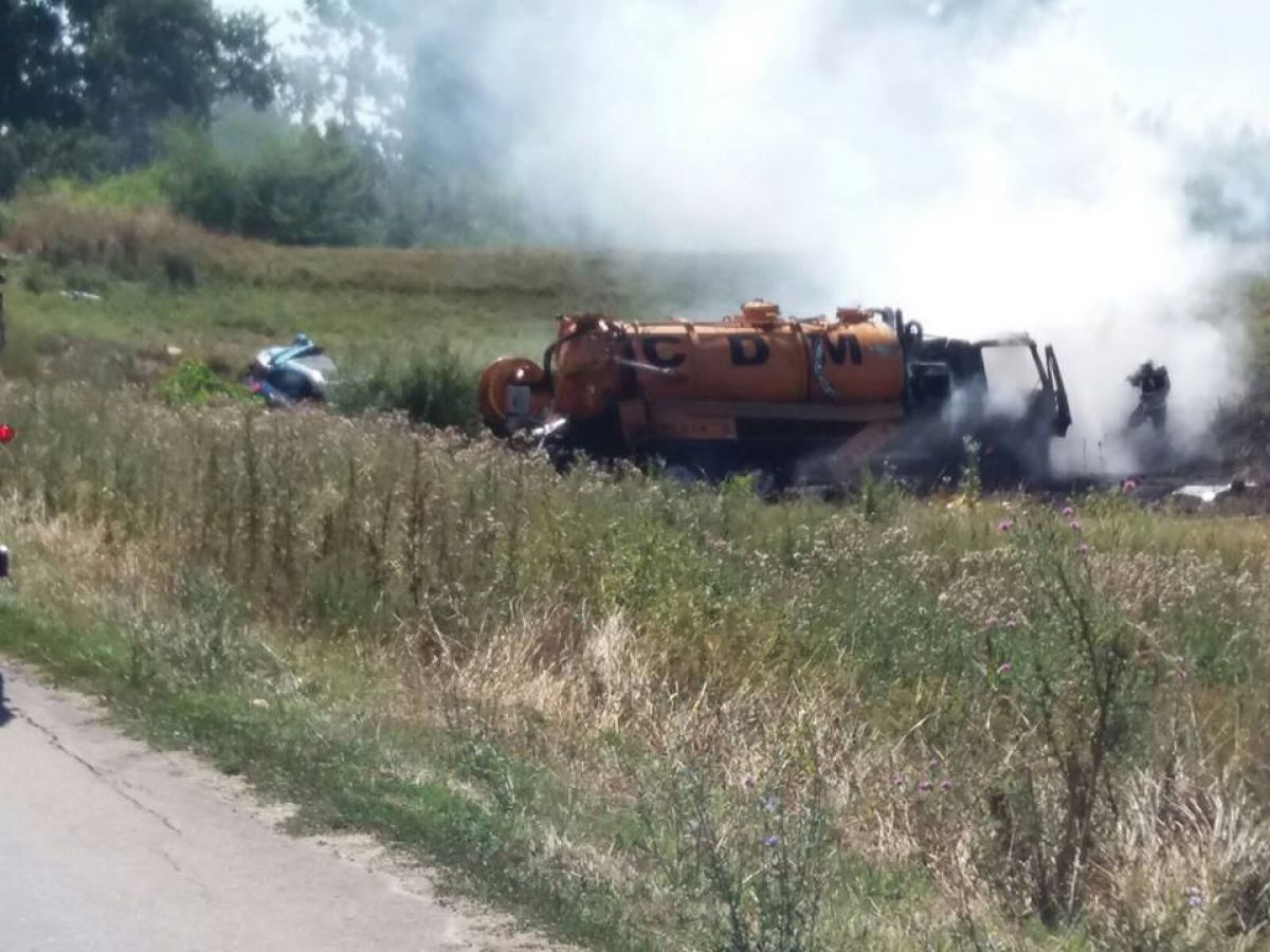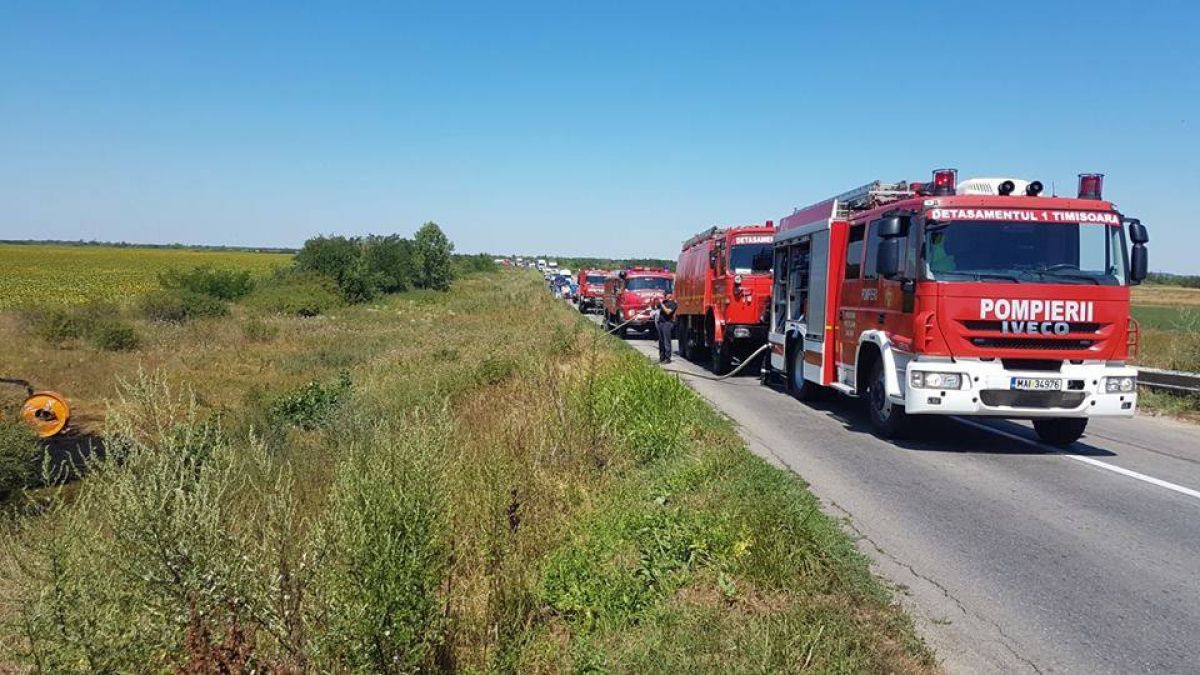 Zeci de pompieri au intervenit, marți, în apropierea localității Albina, județul Timiș. O șoferiță, în vârstă de 42 de ani, a pierdut controlul mașinii și, după ce a ajuns pe contrasens, s-a ciocnit cu putere de o vidanjă. În accident a fost implicat și un alt treilea vehicul parcat în afara șoselei. Este vorba despre mașina unui pescar, care a ajuns în câmp, după ce a fost acroșată de autocamion. Vidanja a fost foc la scurt timp după impactul puternic.