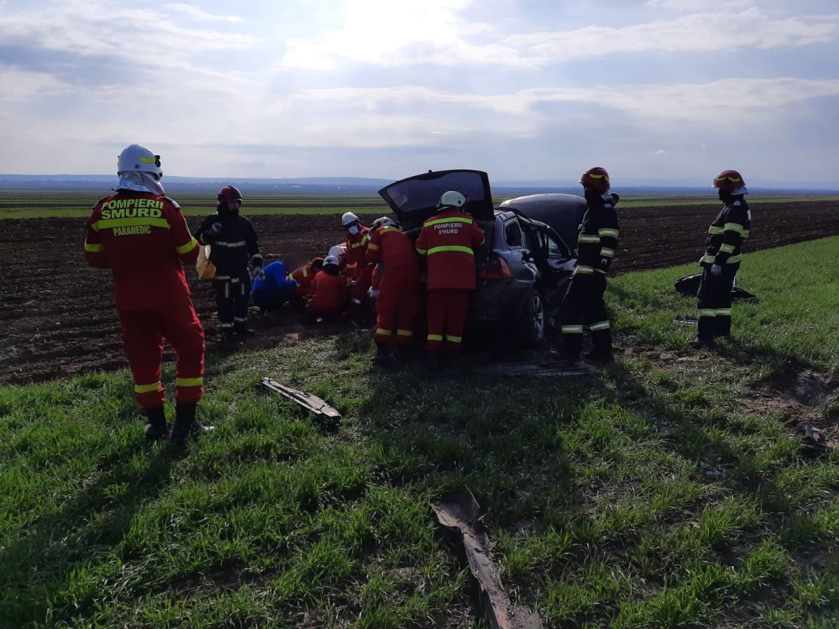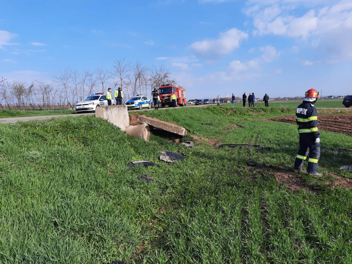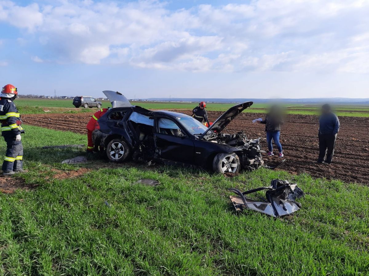 La volan se afla o femeie în vârstă de 43 de ani. Se pare că aceasta a pierdut controlul asupra mașinii, care a intrat într-un cap de pod, după care a fost proiectată pe câmp.