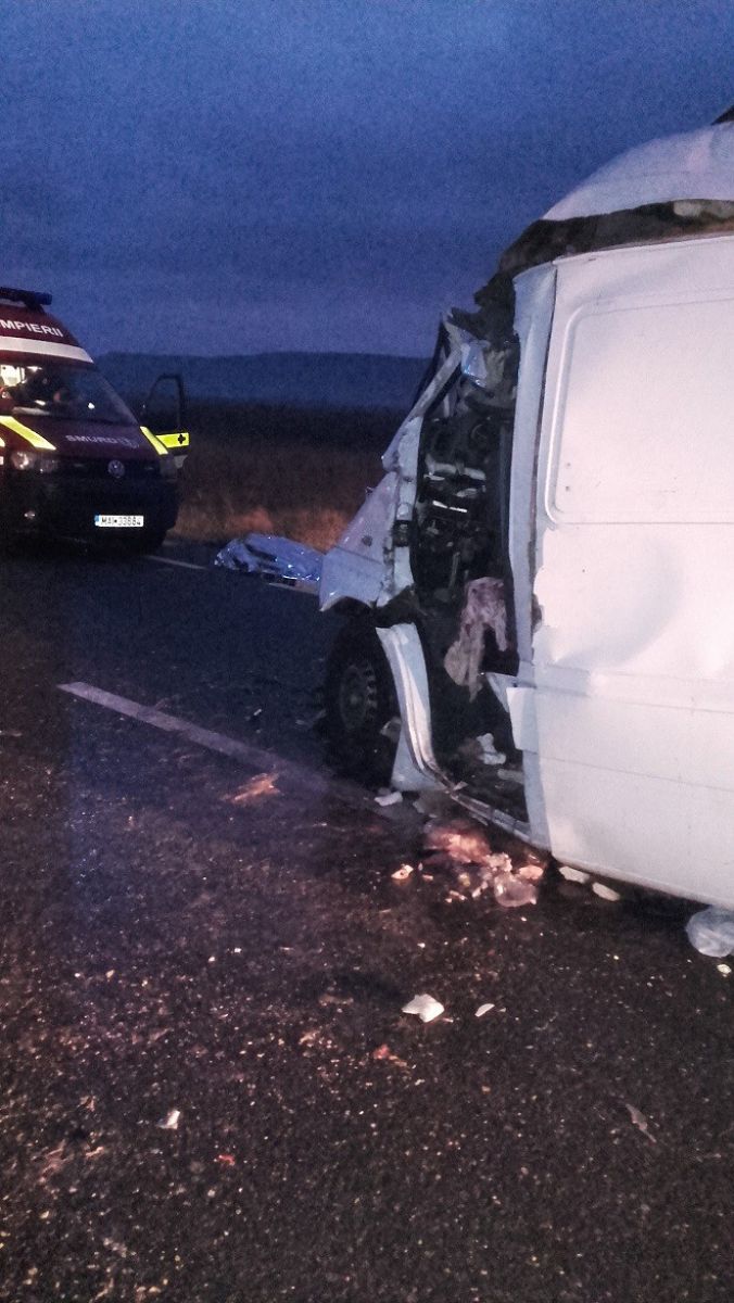 Accident grav ieri dimineaţă în judeţul Mehedinți, pe DN 6. O autoutilitară s-a lovit puternic de un microbuz în care se afla doar şoferul. În urma impactului extrem de violent trei oameni au murit.