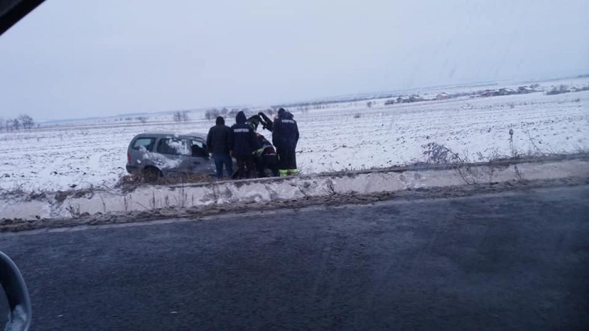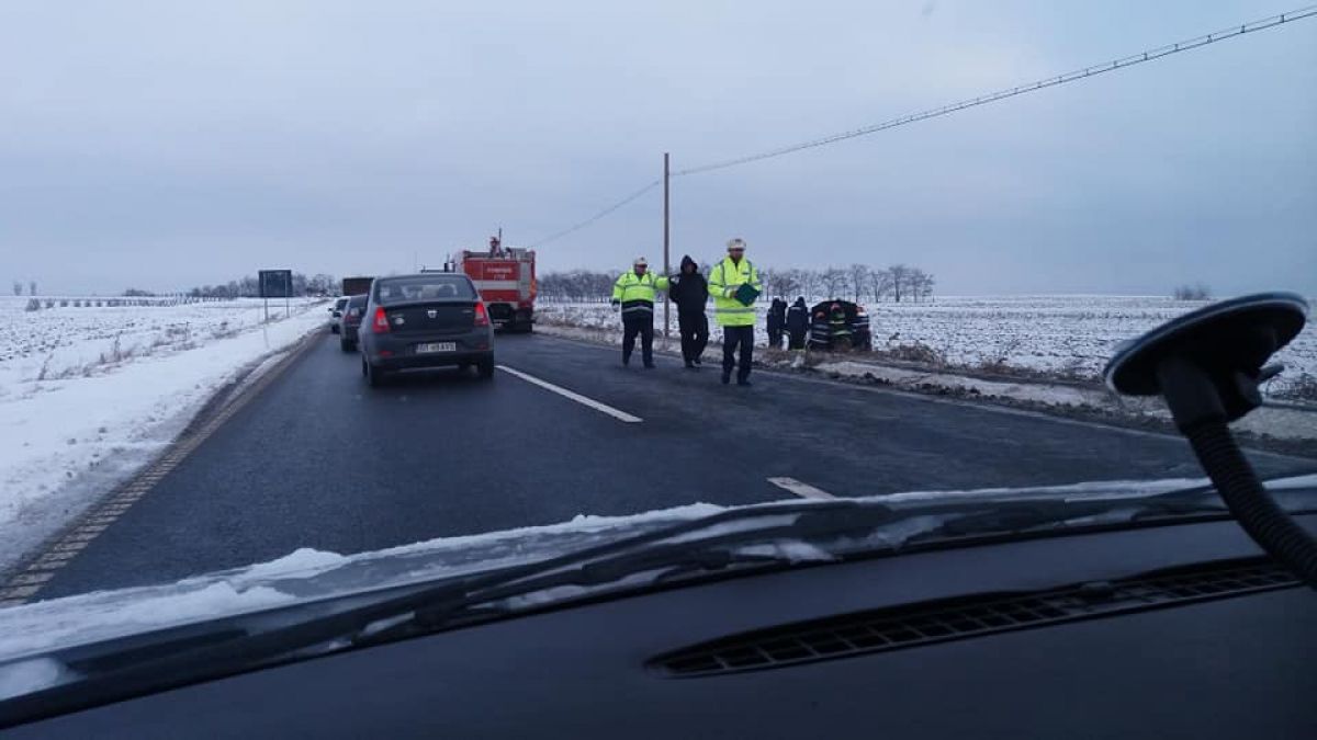 Un bărbat de 52 de ani aflat la volanul unui autoturism Renault a intrat în depăşirea unei autoutilitare, iar, în momentul în care a observat că din sens opus vine un alt autovehicul, a forţat revenirea pe bandă, fiind acroşat de autoutilitara pe care tocmai o depăşea.