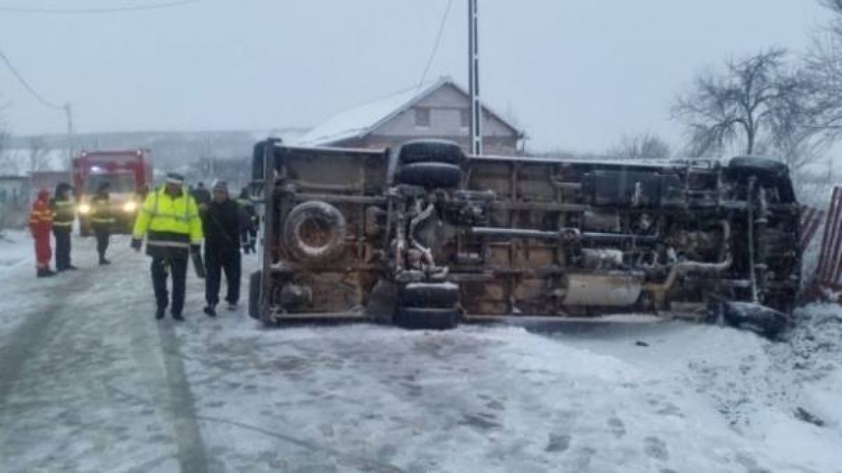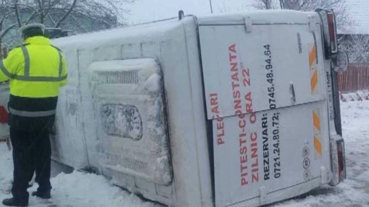 Un microbuz al unei firme de transport a derapat si s-a rasturnat, potrivit purtatorului de cuvant al Inspectoratului de Politie Judetean Olt, Claudia Radu. In autovehicul se aflau 15 copii cu varste curpinse intre 15 si 18 ani, trei dintre ei fiind raniti, a anuntat purtatorul de cuvant al Inspectoratului pentru Situatii de Urgenta Olt, Alin Basasteanu.