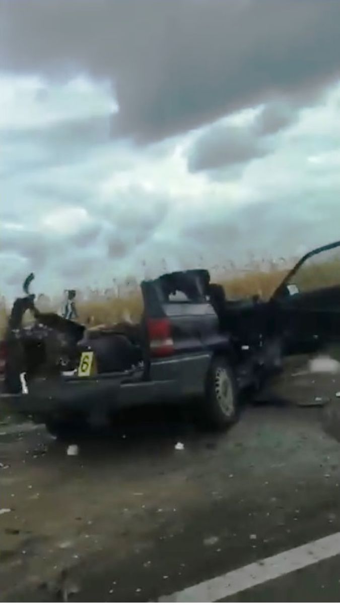Mașina a fost practic decopertată de pompieri pentru a-l extrage pe conducătorul auto. Alte două persoane au fost rănite.