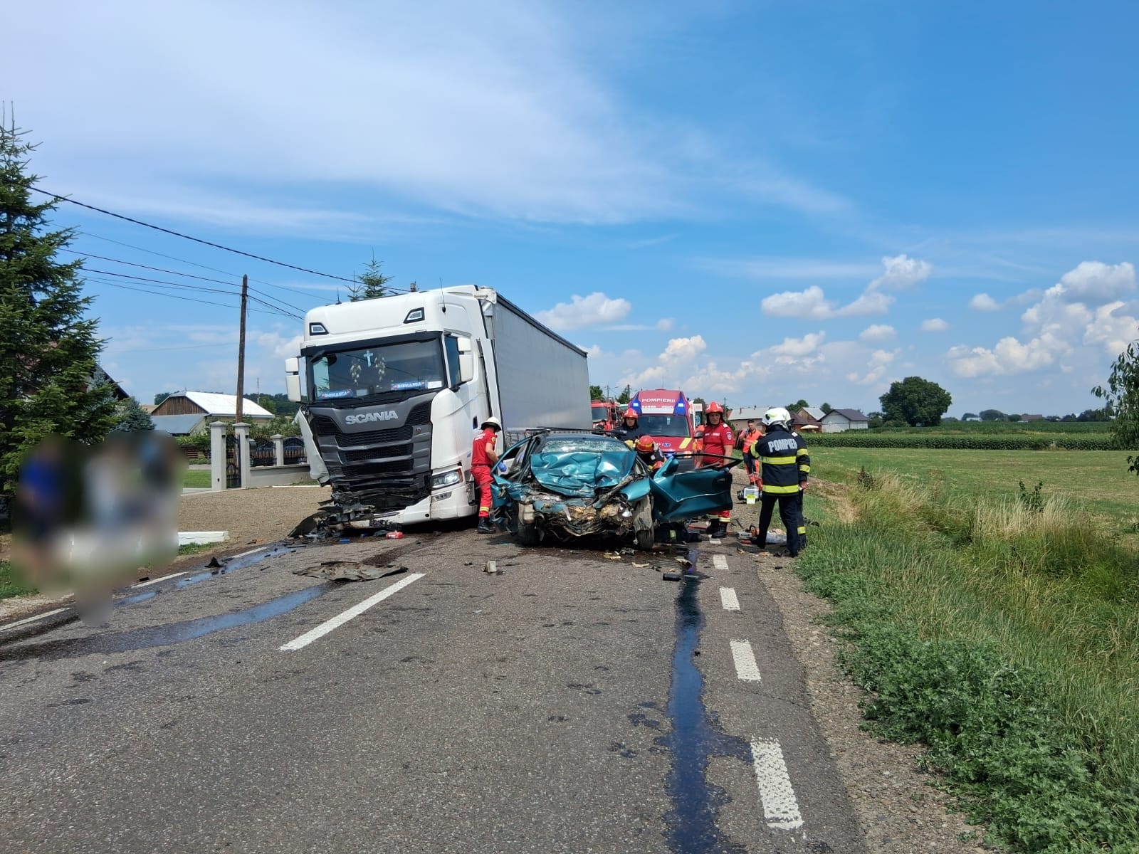 În accidentul rutier au fost implicați doar conducătorii auto ai celor două autovehicule. Pompierii militari au utilizat accesoriile specifice pentru extragerea acestuia dintre fiarele contorsionate.