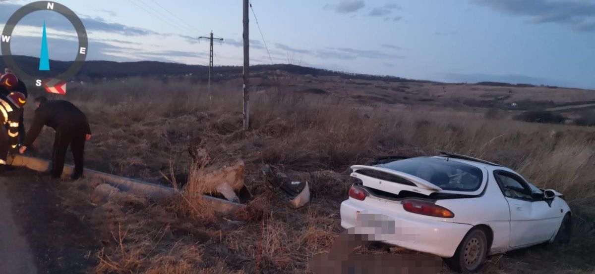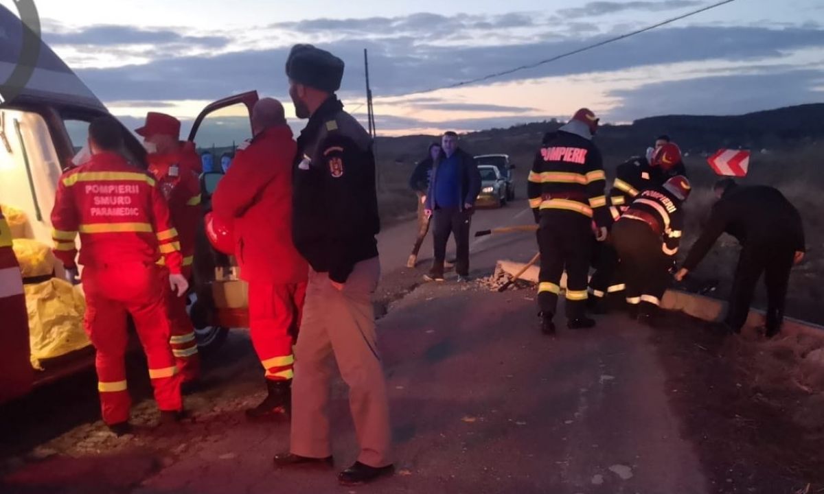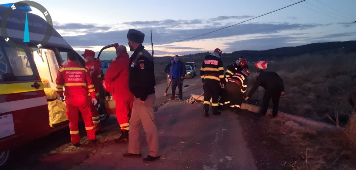 Evenimentul a avut loc în urmă cu puțin timp, după ce un autoturism a intrat într-un stâlp de pe marginea drumului.
