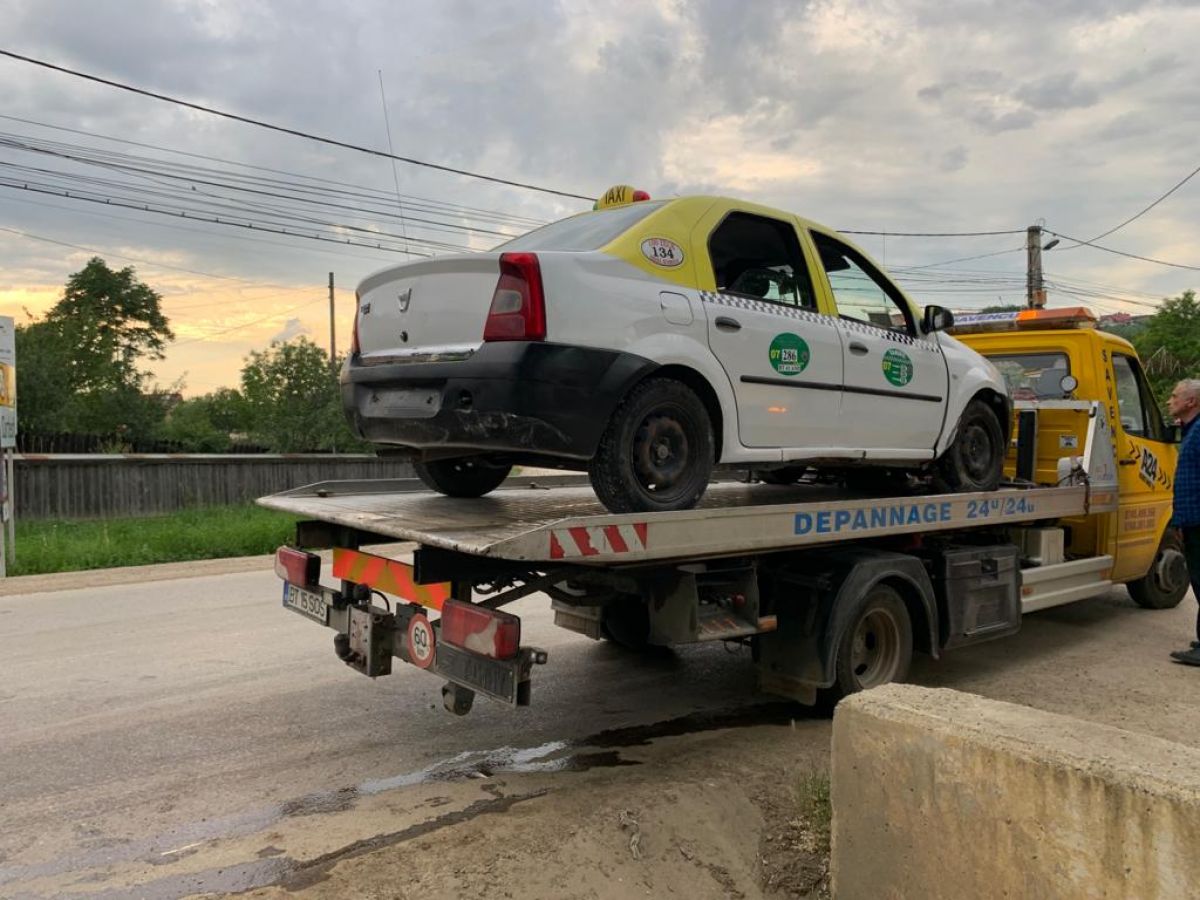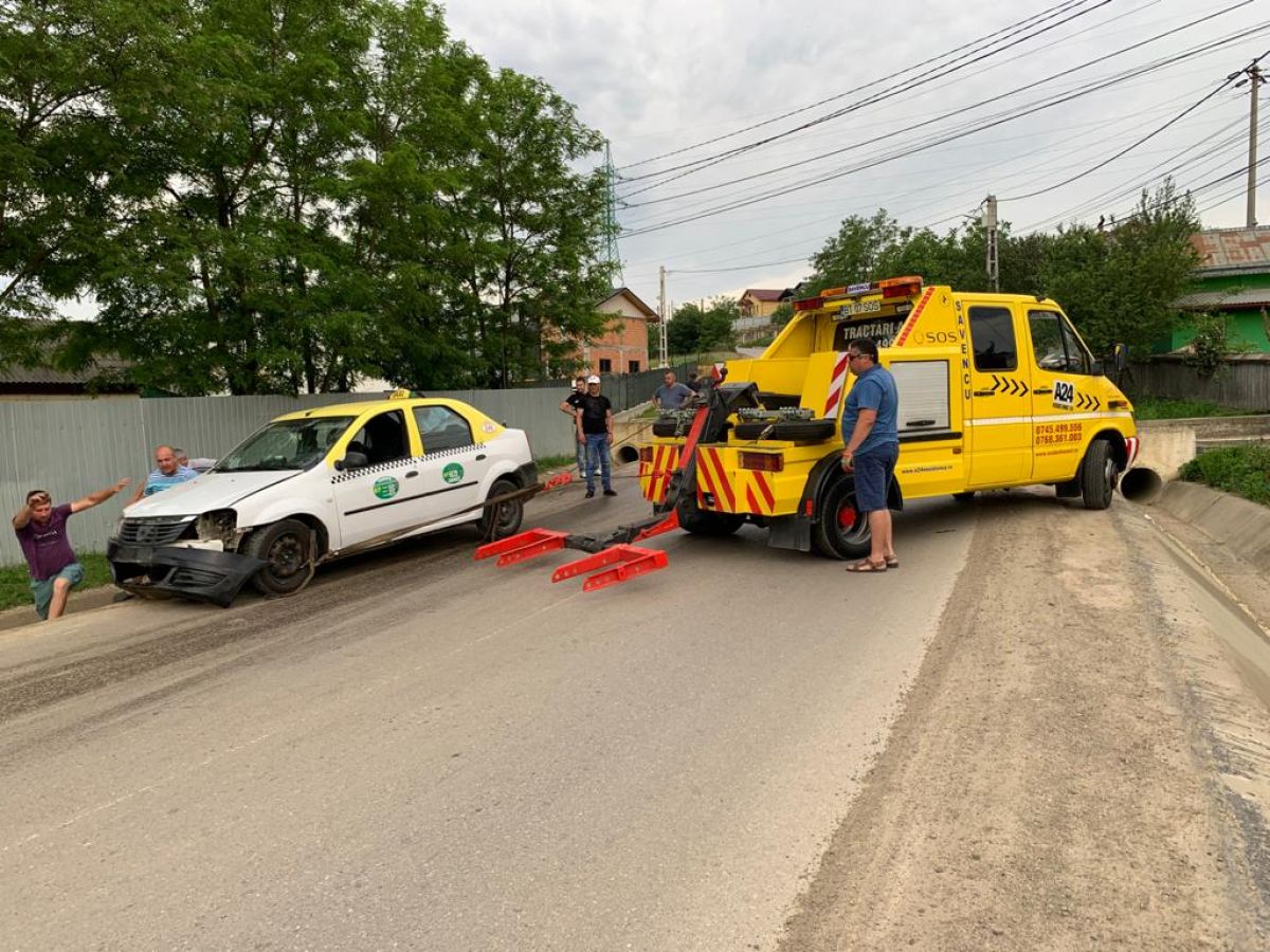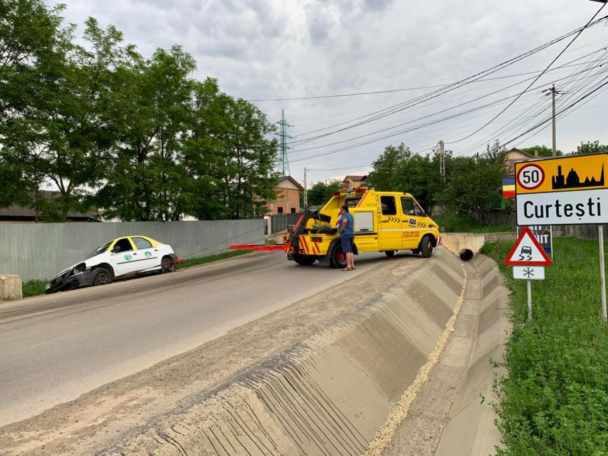 Un autoturism care circulă în regim de taxi a fost avariat după ce șoferul a pierdut controlul asupra volanului și a izbit autovehiculul într-un cap de pod, apoi a ajuns în șanțul de pe marginea drumului.
