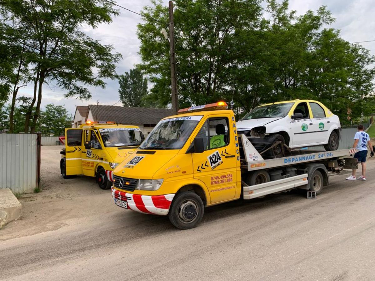 O autospecială de la SOS Savencu a ridicat mașina de la locul accidentului.