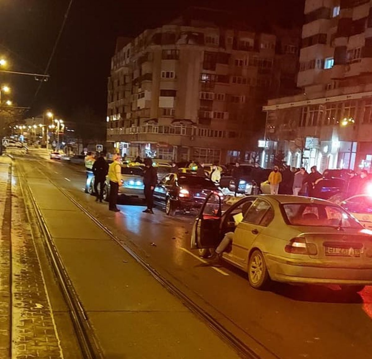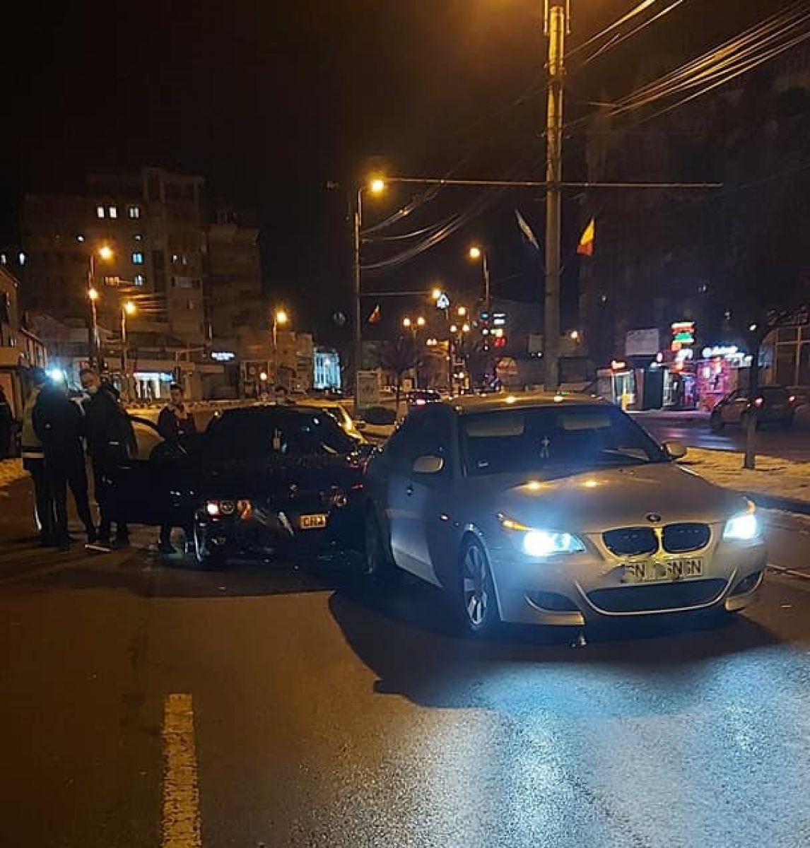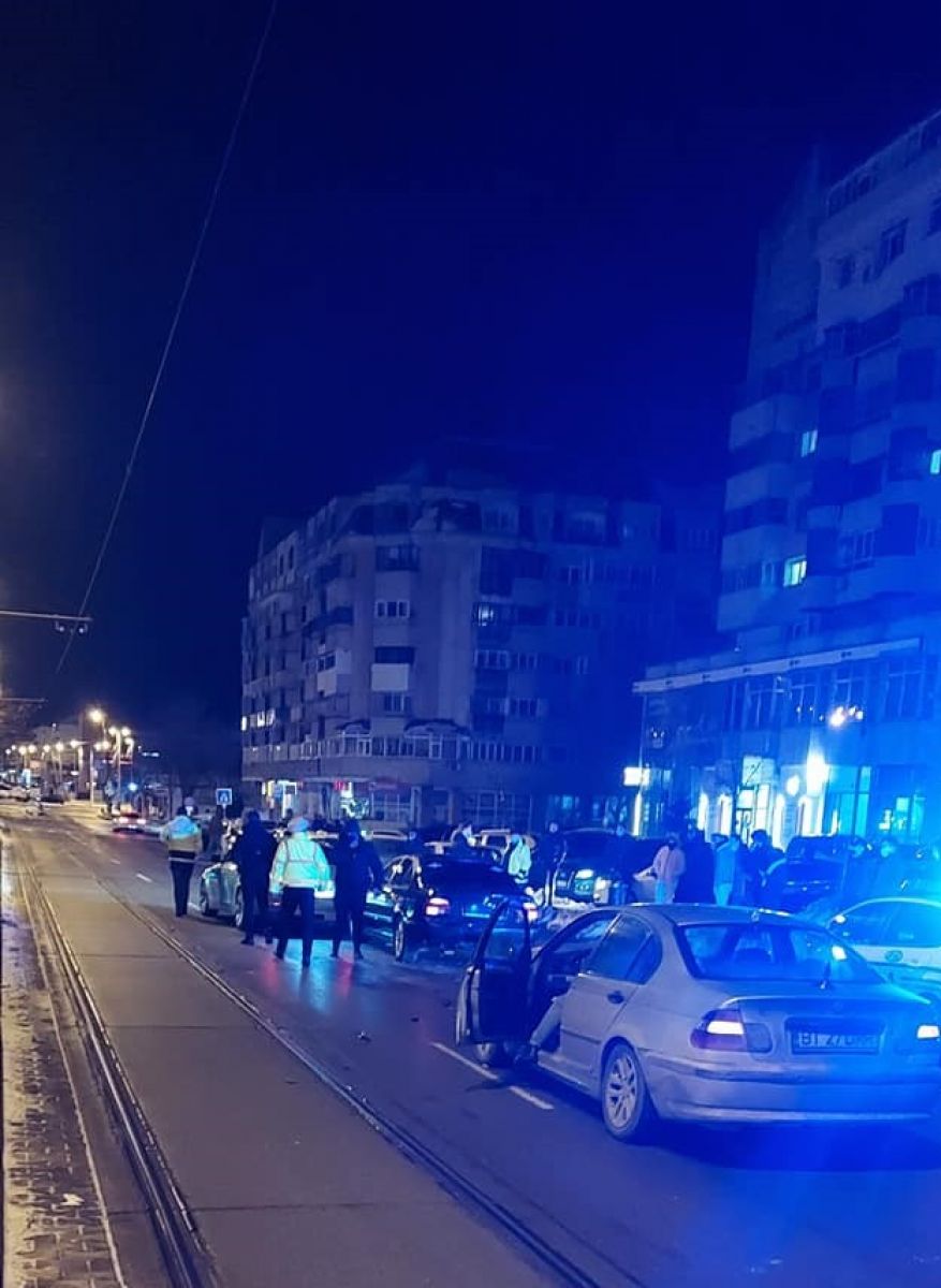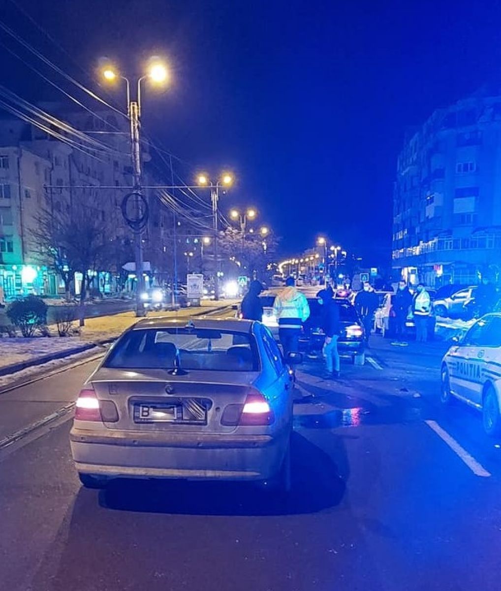 Mașini avariate, luni seara, în centrul municipiului Botoșani.