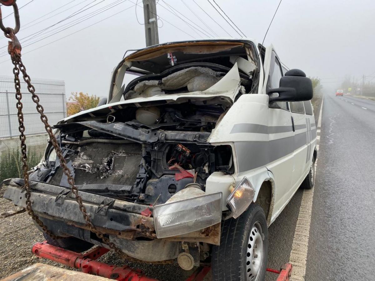 L-ar fi izbit din spate, impactul produvând pagube substanțiale mai ales pentru autoutilitara VW care era distrusă aproape în totalitate în partea frontală. De altfel, bucăți din parbrizul autoutilitarei au rămas pe cuva camionului.