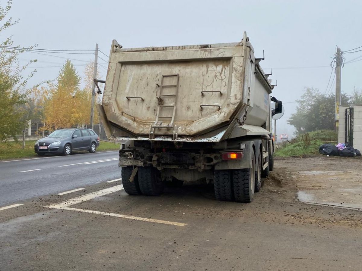 Pe un carosabil umed, doi conducători auto nu și-au putut stăpâni autovehiculele de tonaj mare și au provocat un accident rutier.
