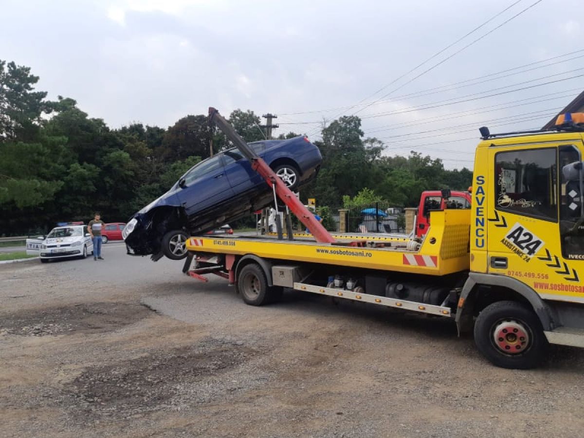 Autoturismul a fost urcat pe o platformă SOS Botoşani pentru a fi dus la un service pentru expertizare iar mai apoi la reparații.
