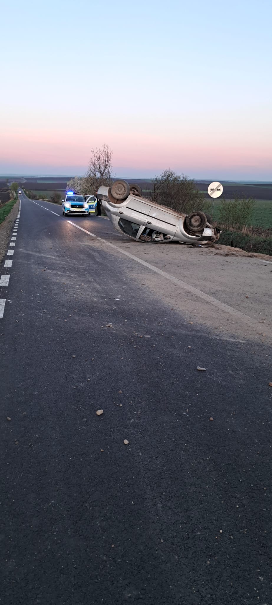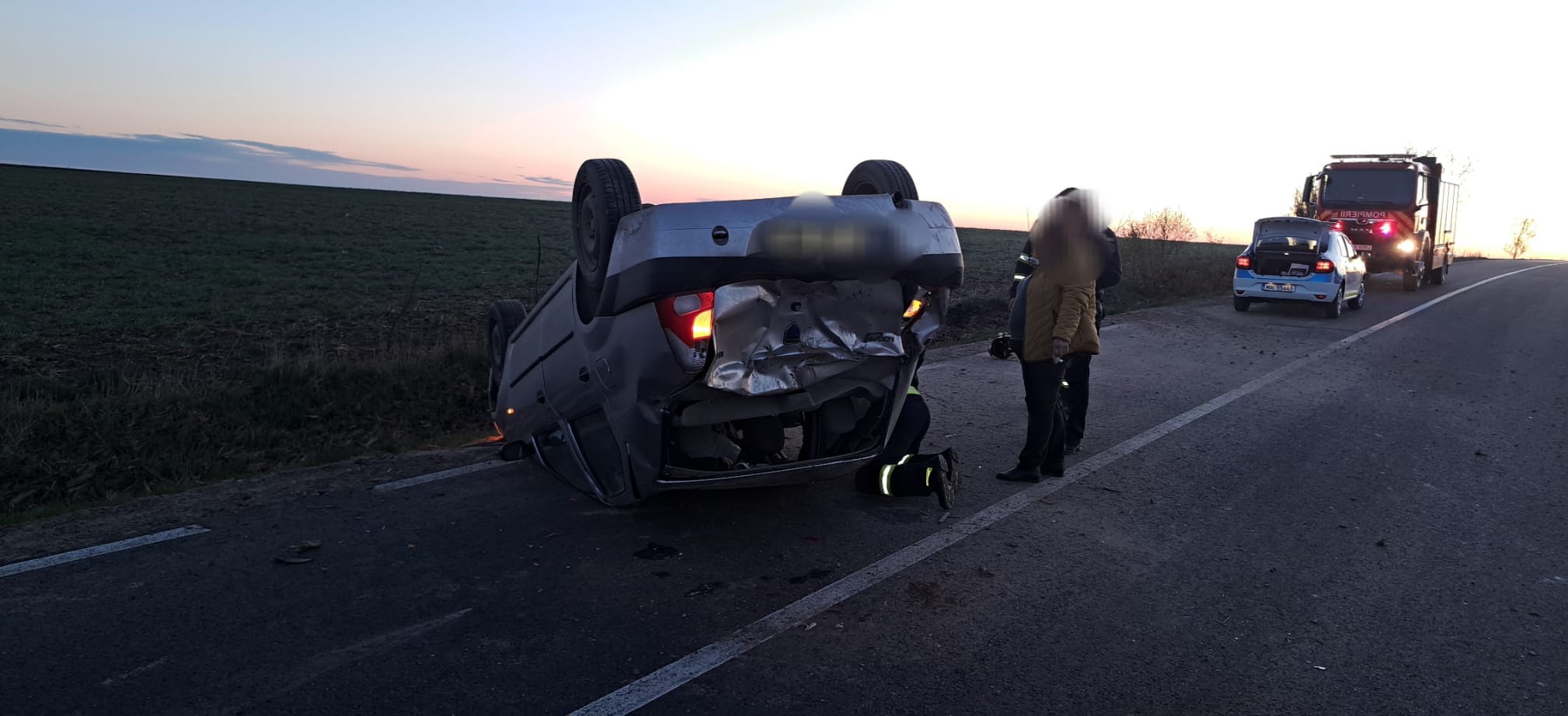 Aceștia au constatat cele două persoane erau ieșite din mașina, care era răsturnată pe cupolă. O femeie, în vârstă de 82 de ani, a fost preluată de echipajul medical și transportată la spital pentru îngrijiri medicale de specialitate.