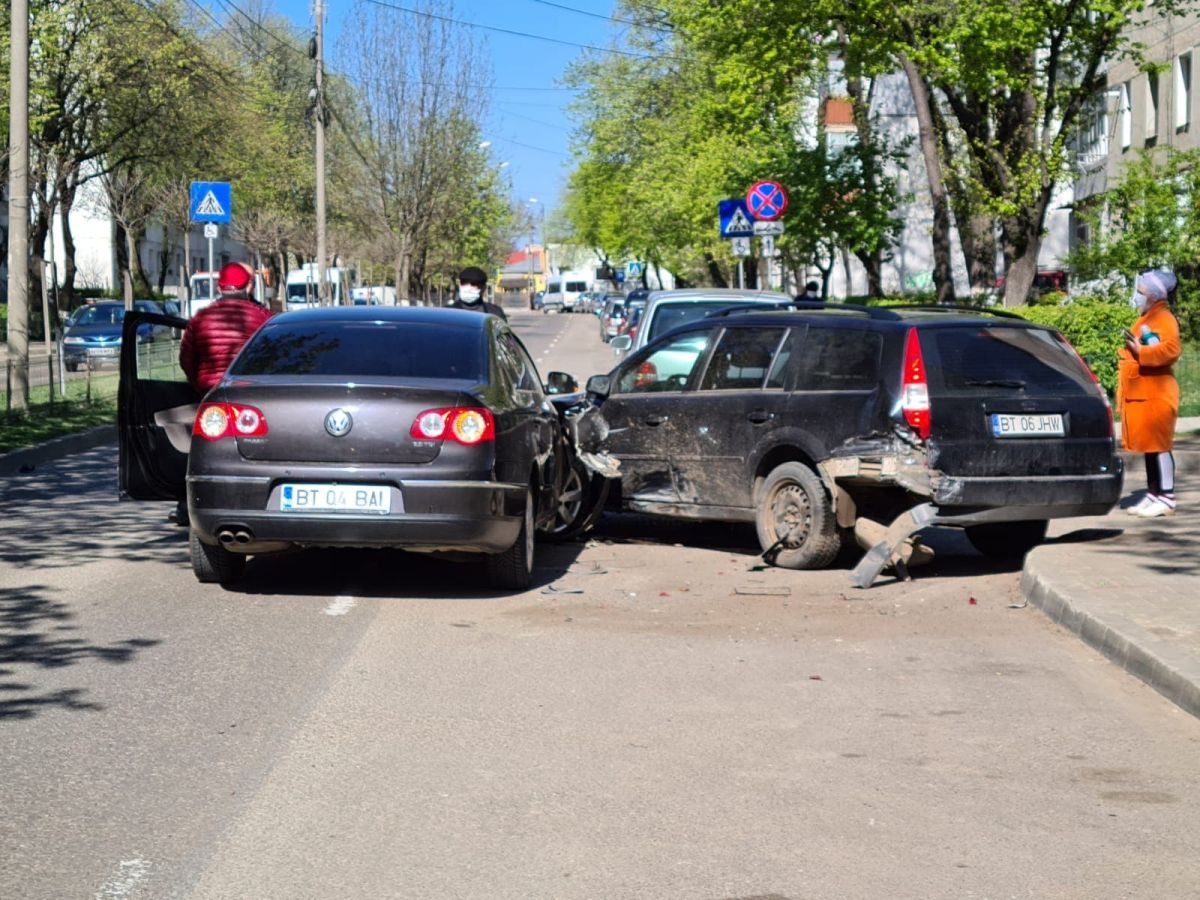 Două autoturisme s-au ciocnit fiind avariate, din cauza neatenției unuia dintre conducătorii auto. Au fost implicate un VW Passat și un Ford.