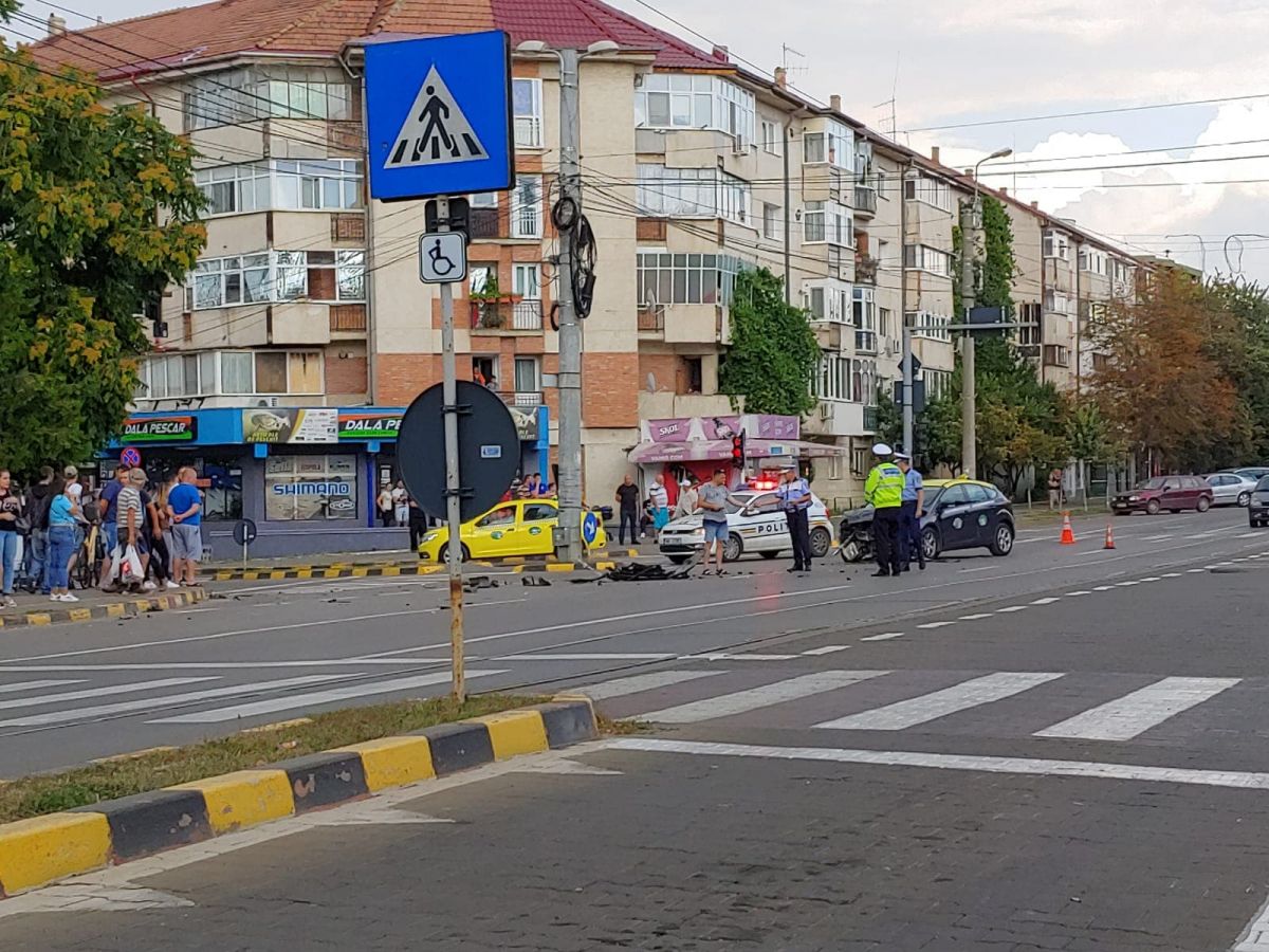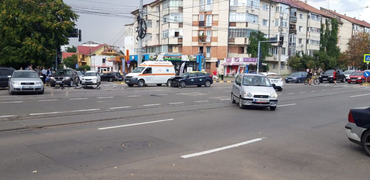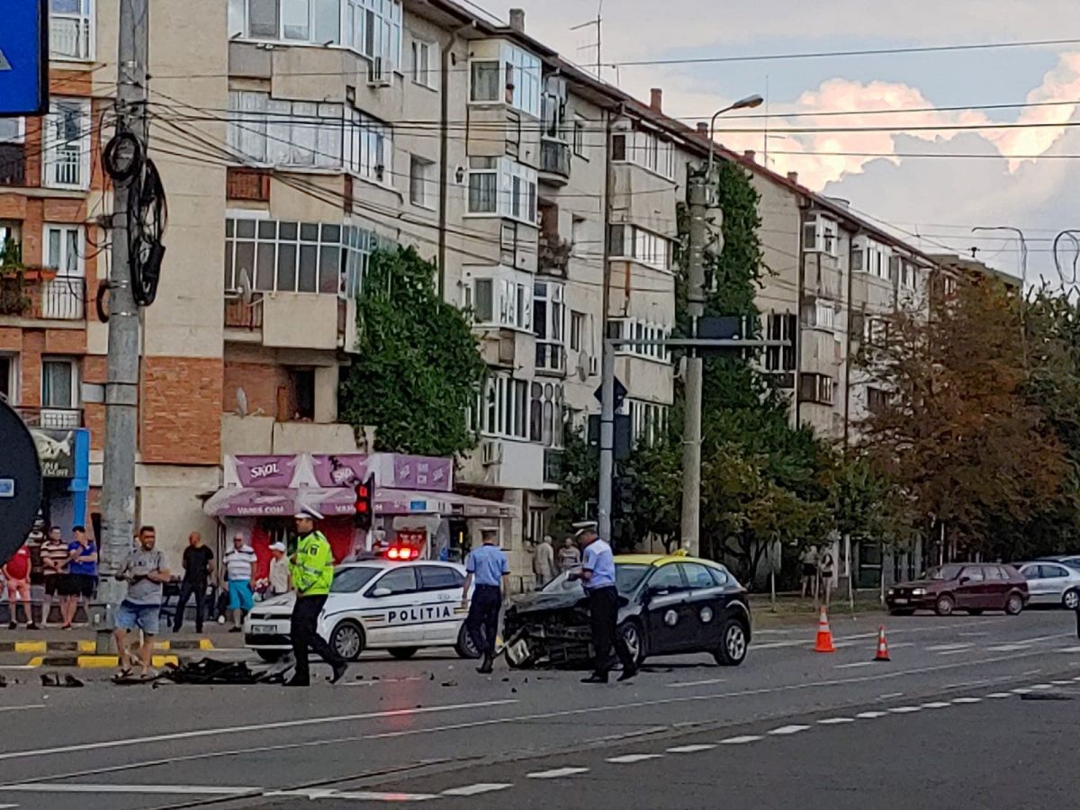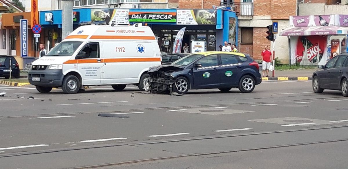 Un Audi și un taxi s-au izbit violent în urmă cu puțin timp la intersecția dintre Calea Națională și strada Octav Onicescu.