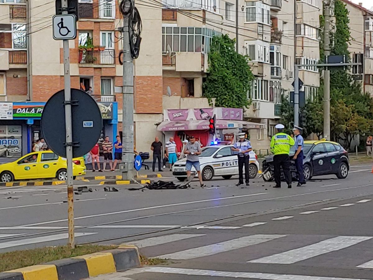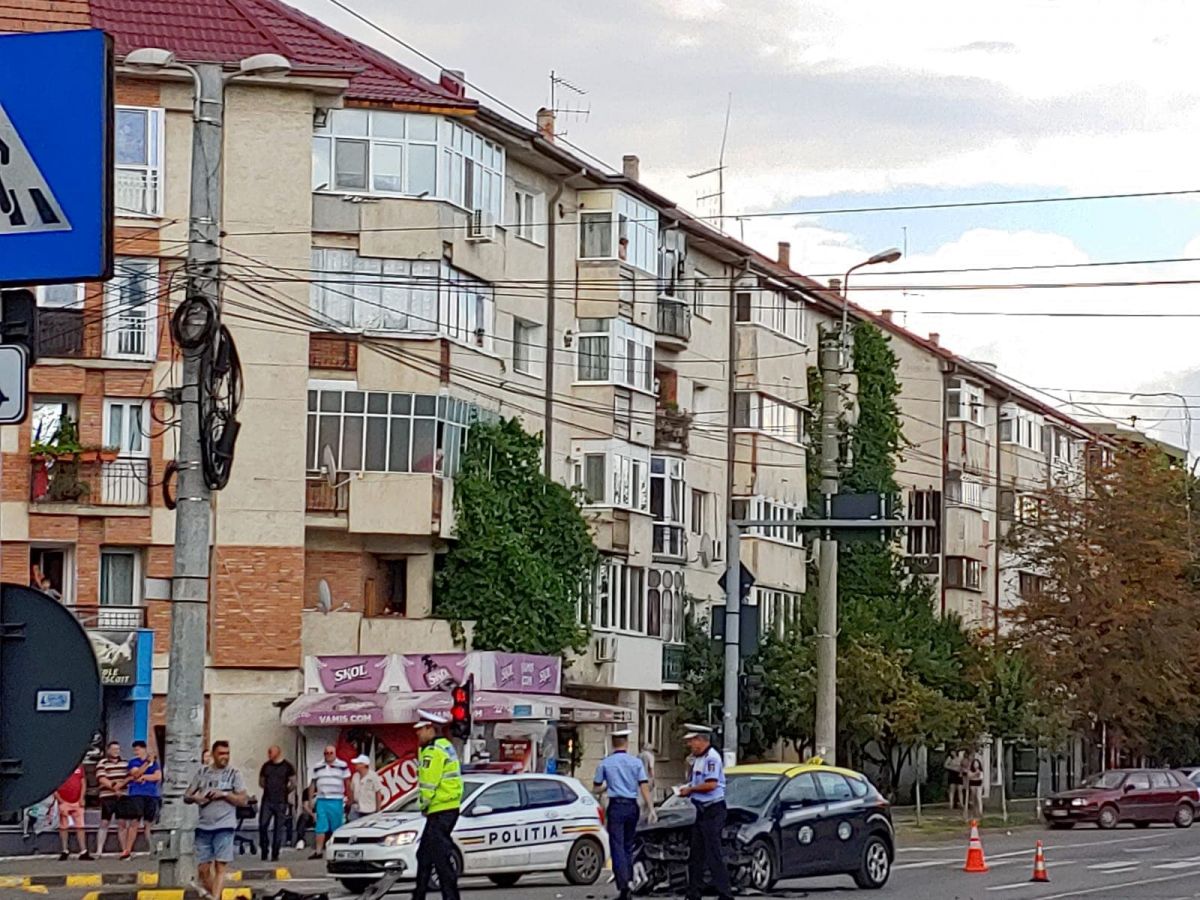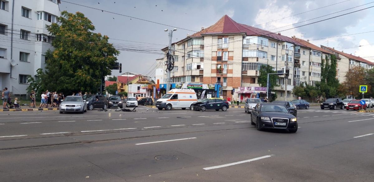 Un Audi și un taxi s-au izbit violent în urmă cu puțin timp la intersecția dintre Calea Națională și strada Octav Onicescu.