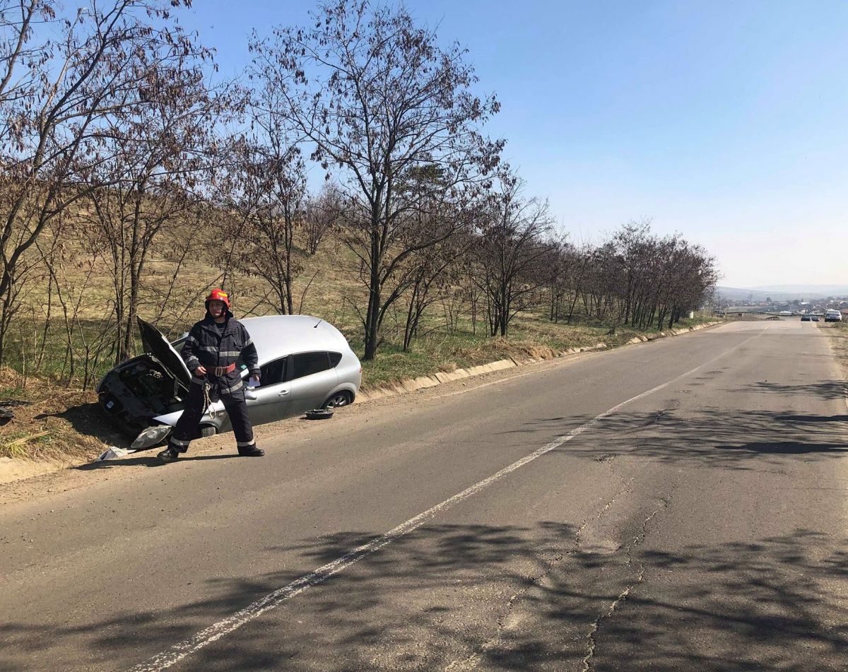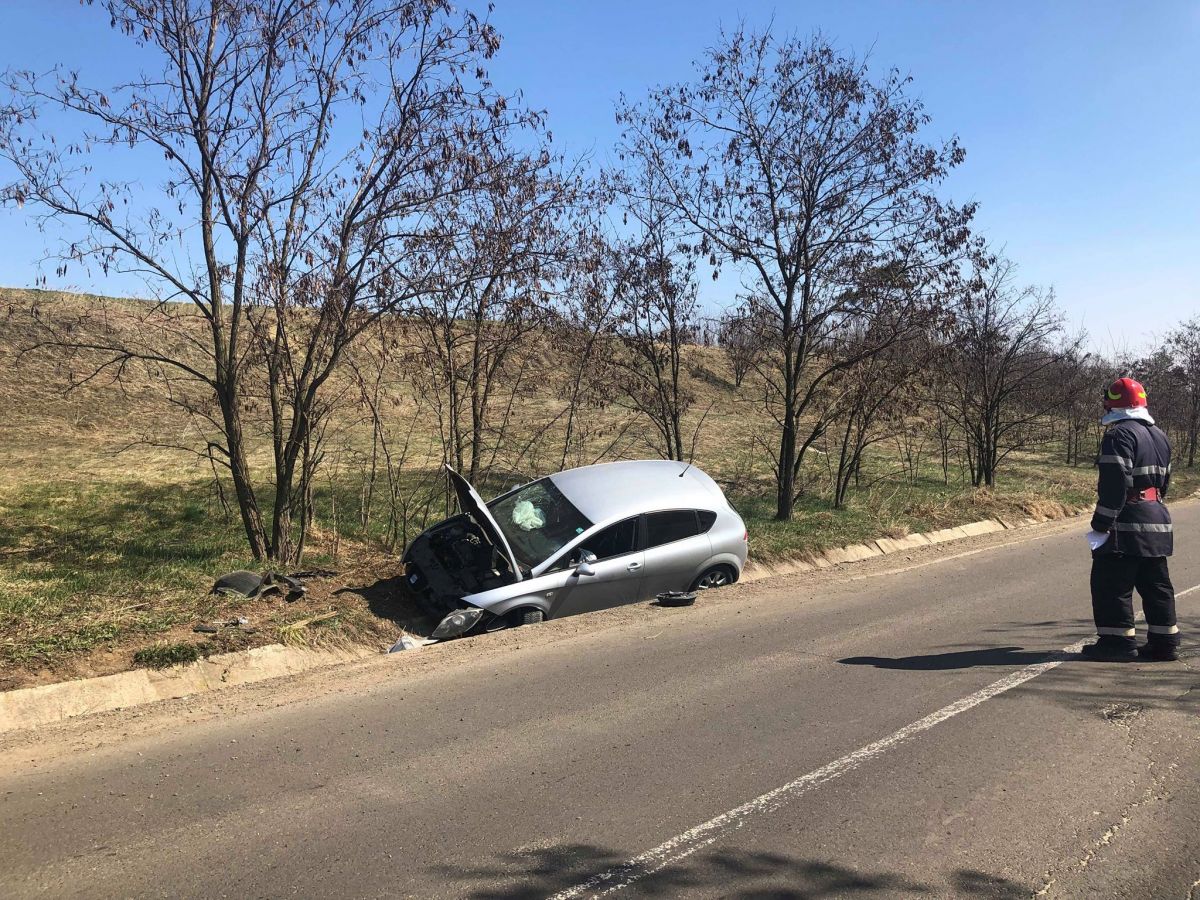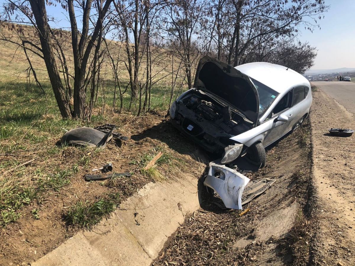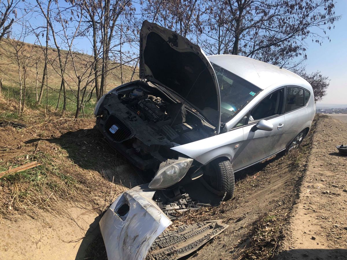 Pentru a evita impactul, bărbatul aflat în Seat a tras tare de volan, mașina s-a rotit la 180 de grade și s-a oprit în șanț.