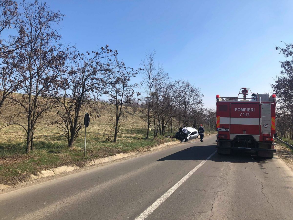 Impactul cu acostamentul a fost destul de puternic, autoturismul fiind serios avariat mai ales în partea frontală.