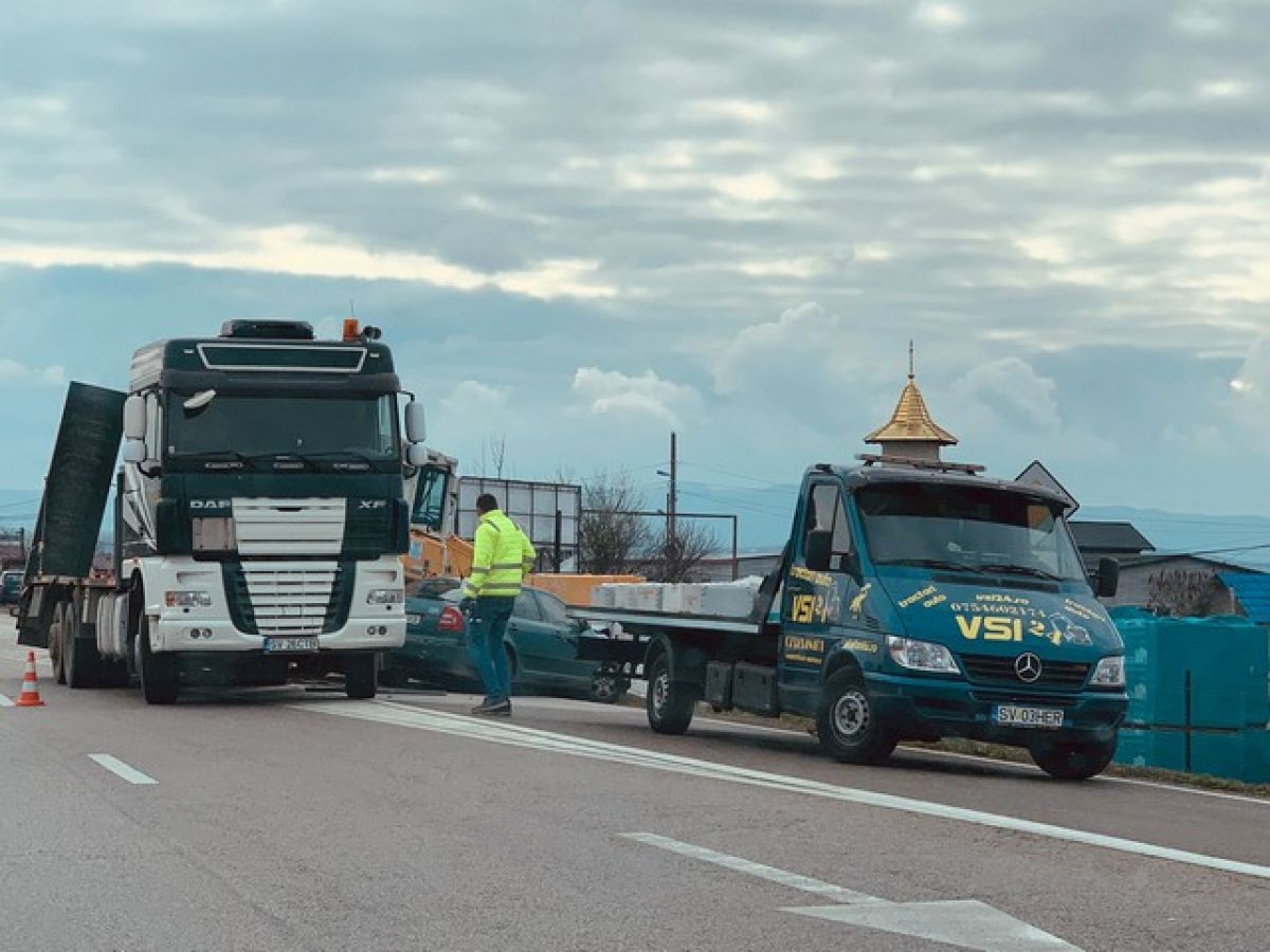 Vineri, în jurul orei 12.30, pe E85, la Fântâna Mare, județul Suceava, la intersecția cu drumul care duce spre Târgu Neamț, a avut loc un accident grav și mai puțin obișnuit, în urma căruia trei persoane au fost rănite.