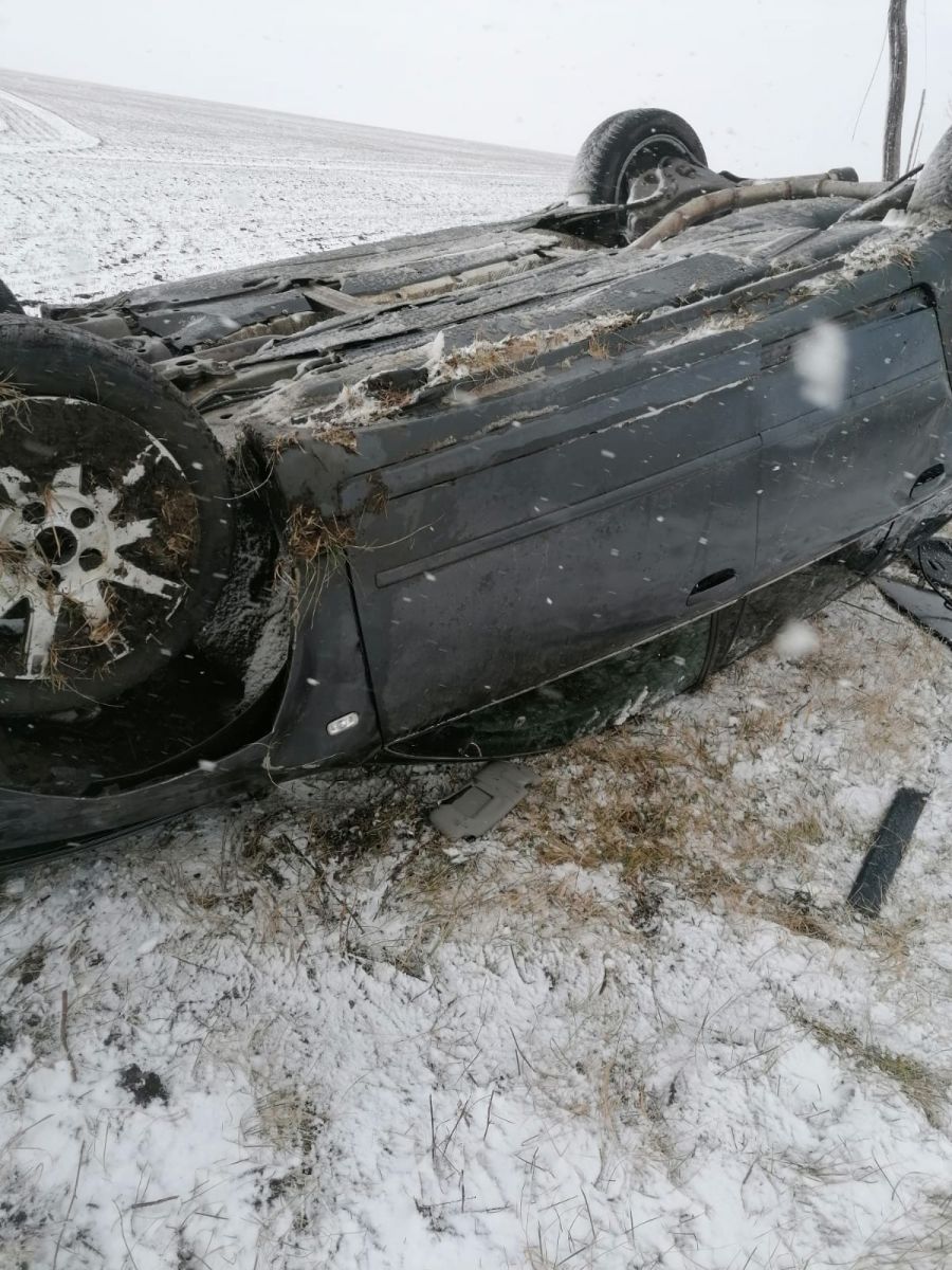 Un autoturism a ieșit de pe carosabil, s-a rostogolit de mai multe ori și a ajuns pe cupolă, pe câmp.
