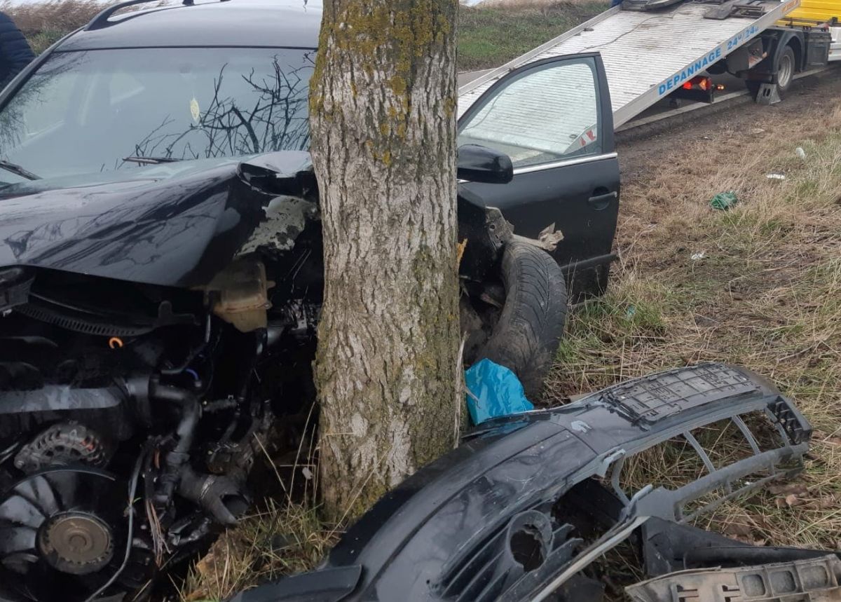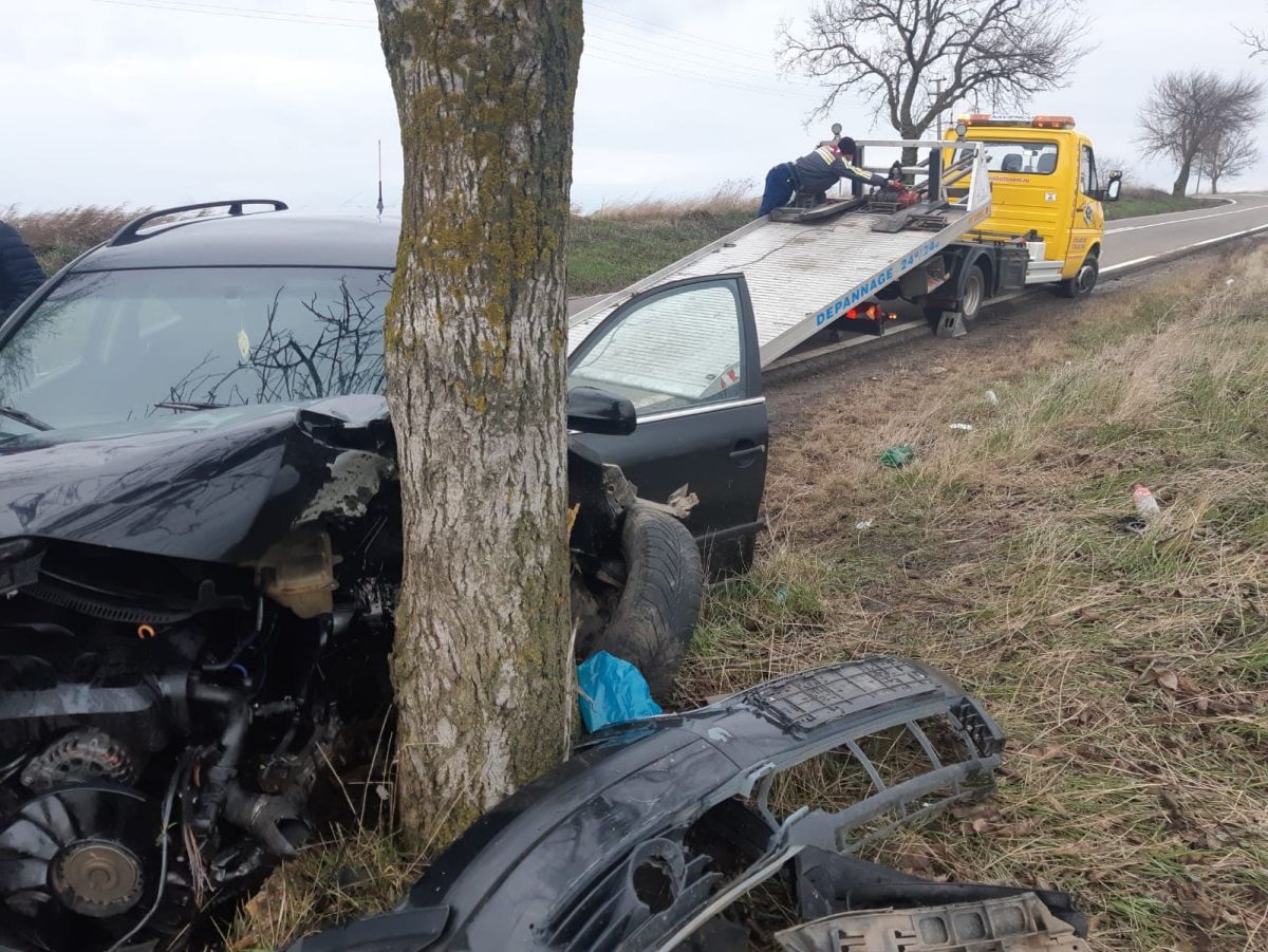 Conducătorul unui autoturism a pierdut controlul asupra volanului, a părăsit partea carosabilă și s-a izbit violent într-u copac de pe marginea drumului.