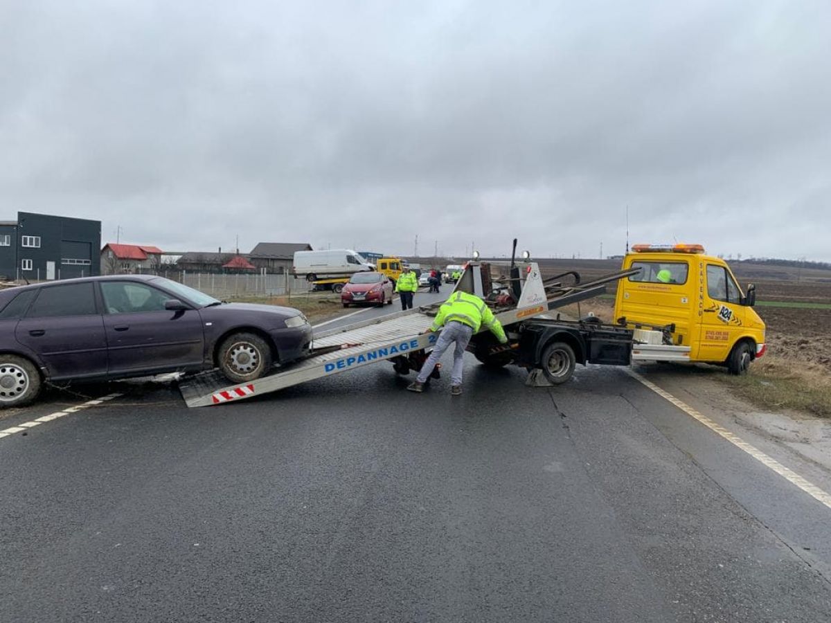 Impactul a avut loc în momentul în care conducătorul auto din autoutilitară a vrut să vireze dreapta, pentru a întoarce, fiind lovit din spate de șoferul din Audi.