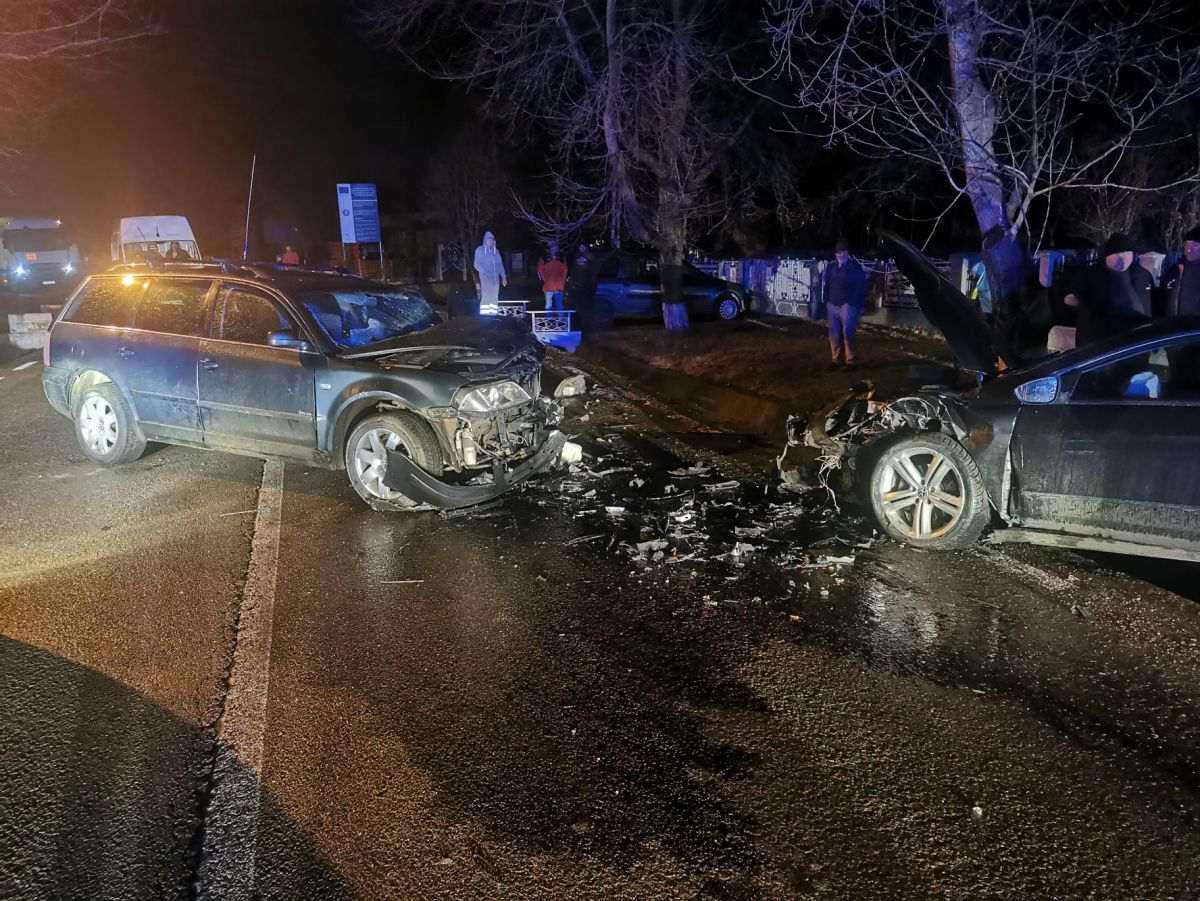 Evenimentul a avut loc, în această seară, după ce două autoturisme au intrat în coliziune frontală.